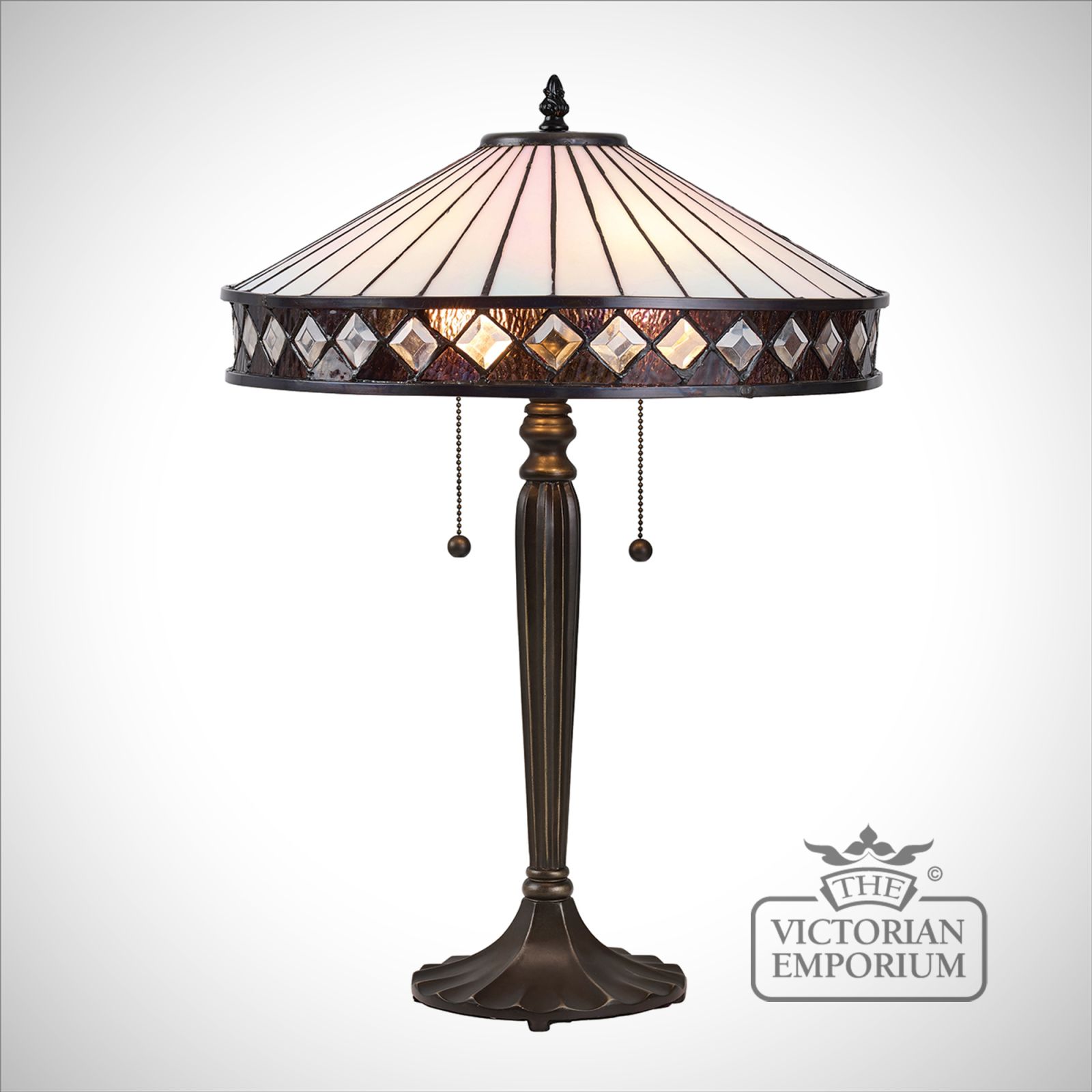 This Tiffany style table light is a beautifully understated design comprising of clean lines and diamond shaped detailing