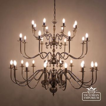 Large chandelier in brass has 16+8+8 arms and is an ideal chandelier for a large room or hallway