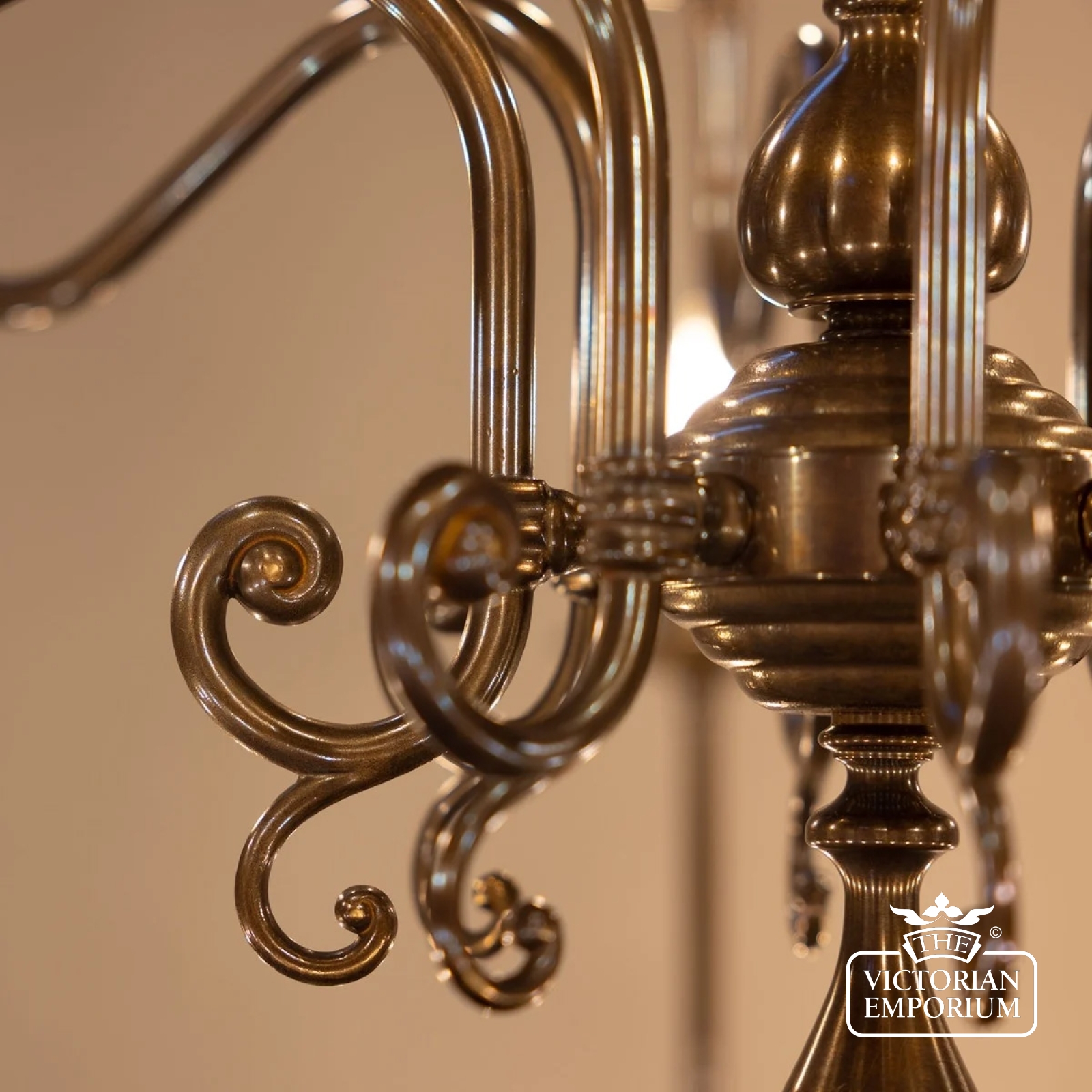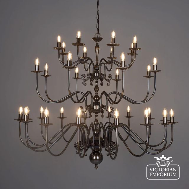 The Fleming grand chandelier in brass has a configuration of 16+8+8 arms and is an ideal chandelier for a large room or hallway to create instant impact.