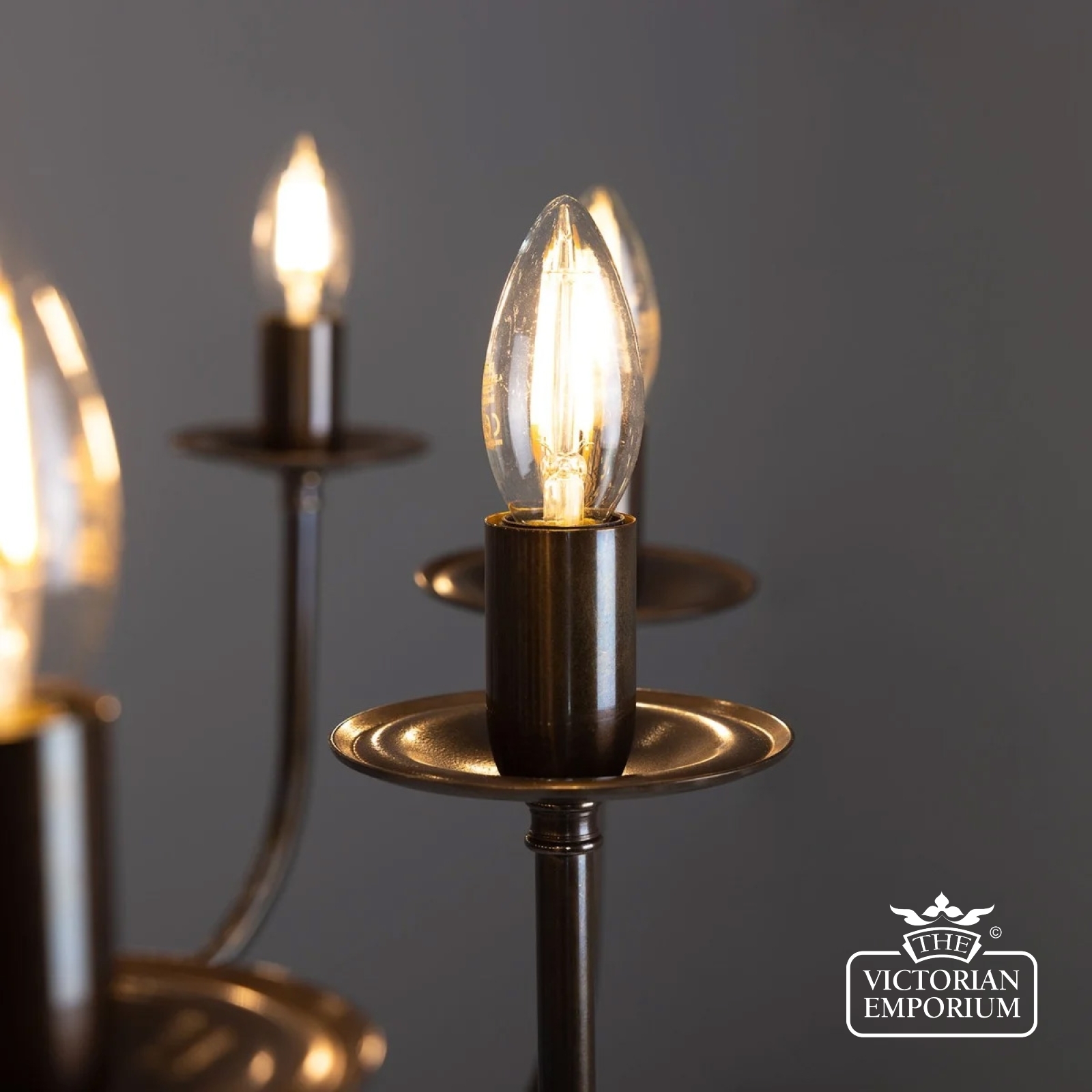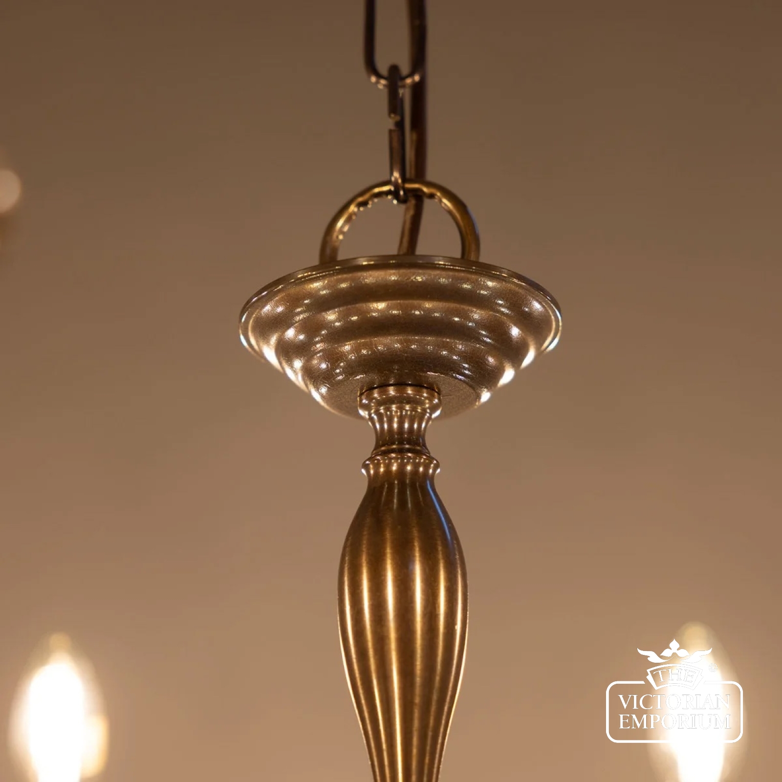 A minimum of 21cm must be added to the chandelier height to include one link and cup. All chandeliers come with 3 or 5 links and an ornate cup to cover the electrical wires. All of our crystal chandeliers (armed) are normally posted out unassembled and are supplied with bulbs (35mm, clear candle, SES/E14 unless otherwise stated) and a standard open screw hook (this hook must be securely fixed into a joist) to the hang chandelier.