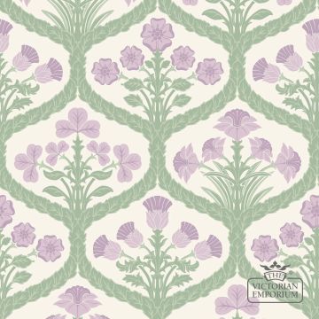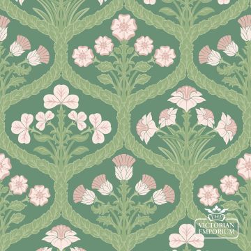 Floral Kingdom wallpaper is a soft design made of knotted leaves and each of the United Kingdom’s national flowers