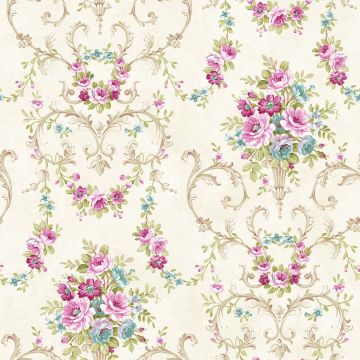 A pretty wallpaper featuring a formal floral arrangement in a vase on plain coloured backgrounds This design would be suitable for a living room, bedroom or just a feature wall. It's a very elegant wallpaper design.