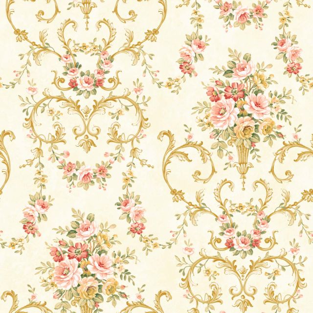 A pretty wallpaper featuring a formal floral arrangement in a vase on plain coloured backgrounds This design would be suitable for a living room, bedroom or just a feature wall. It's a very elegant wallpaper design.