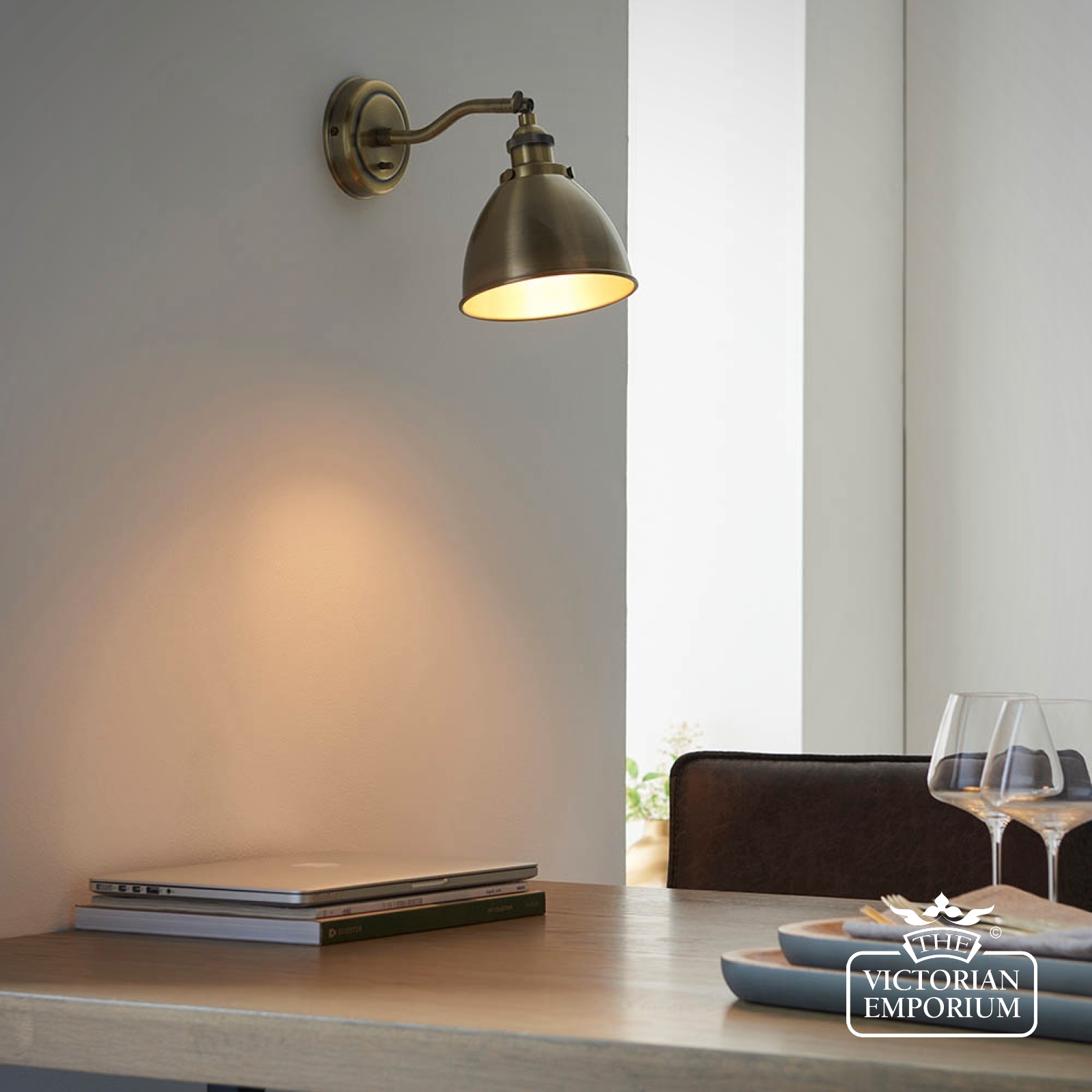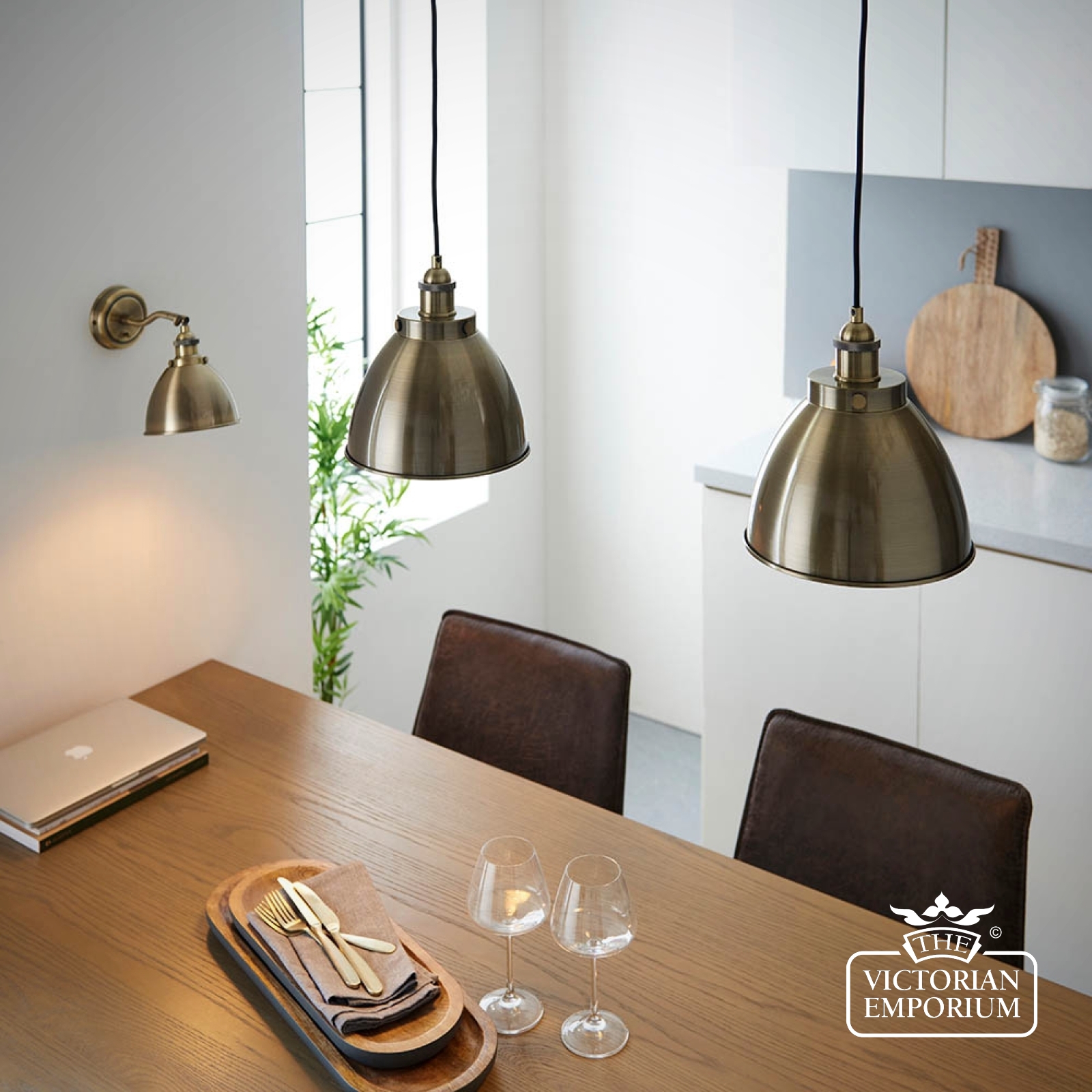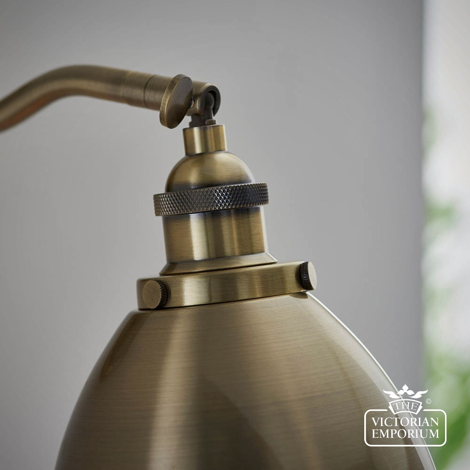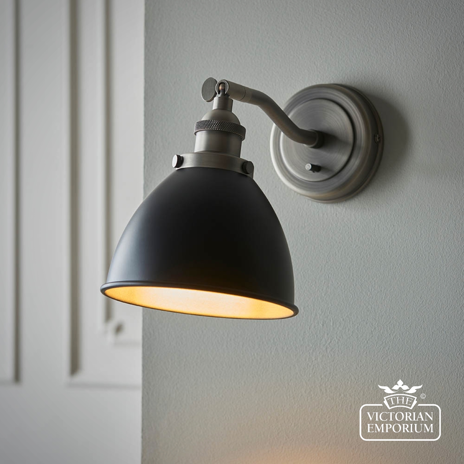 An authentic ‘restaurant’ style adjustable wall light, finished in antique brass or in black and pewter. Featuring an adjustable knuckle and accessible on/off switch, pair this wall light with filament LED lamps for that perfect industrial style.