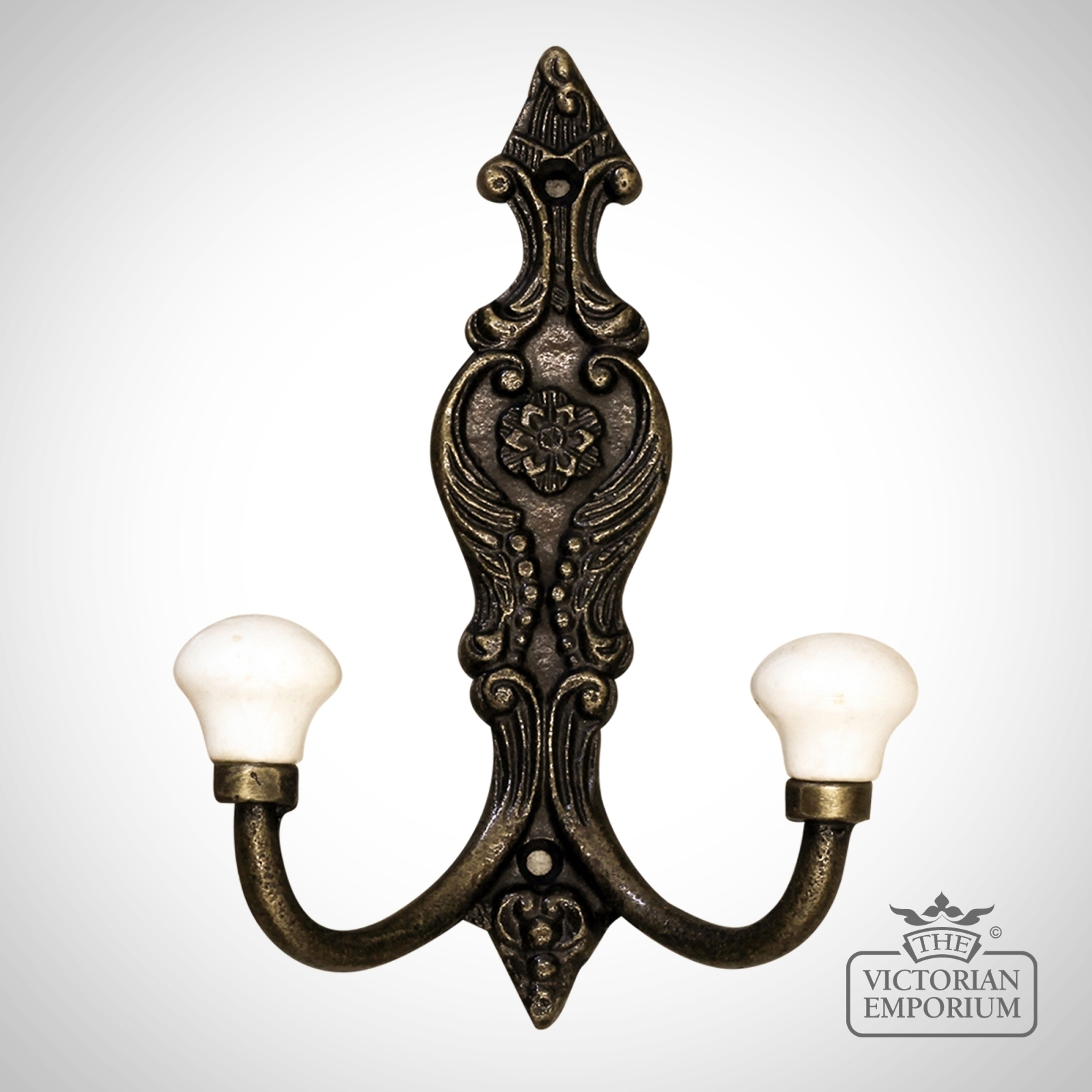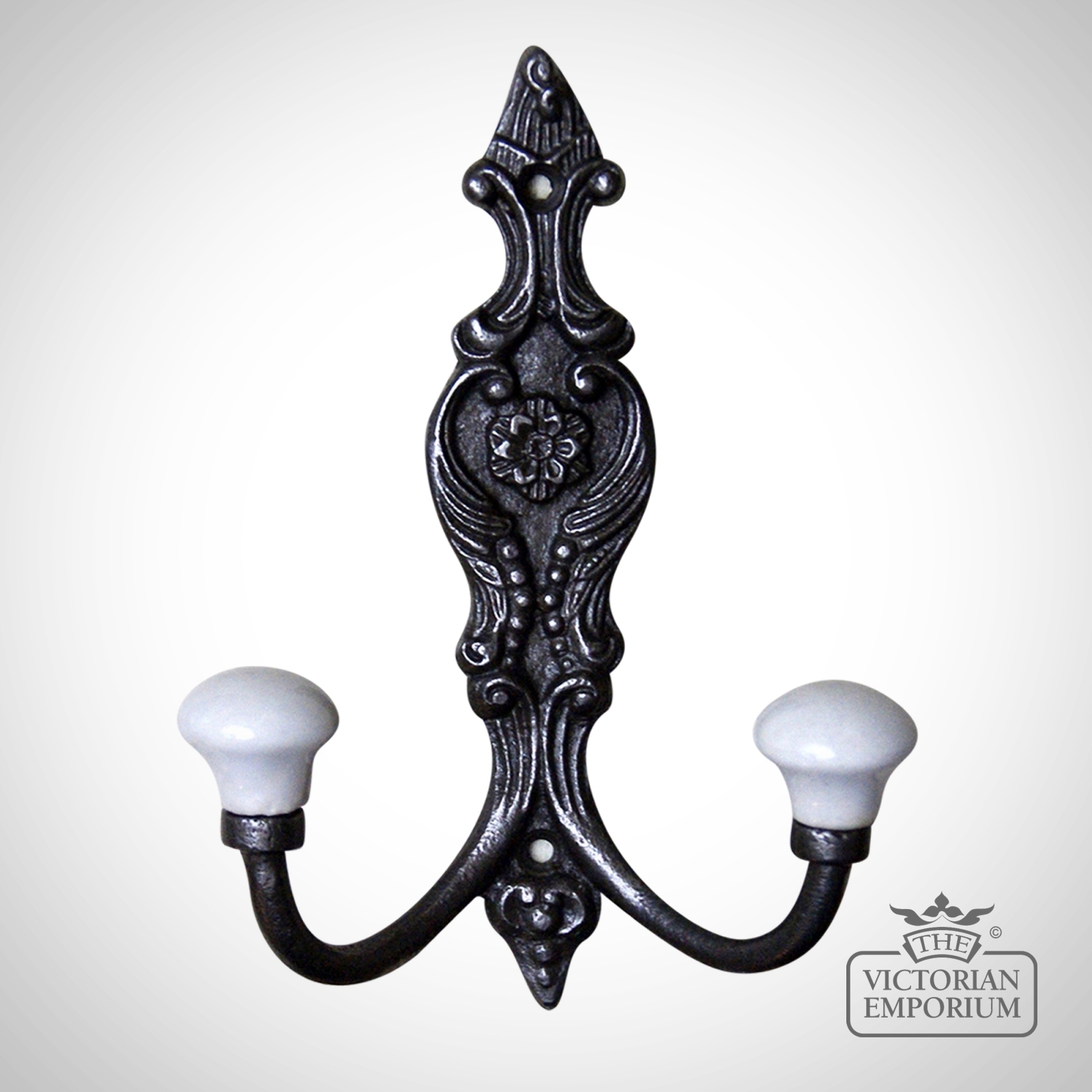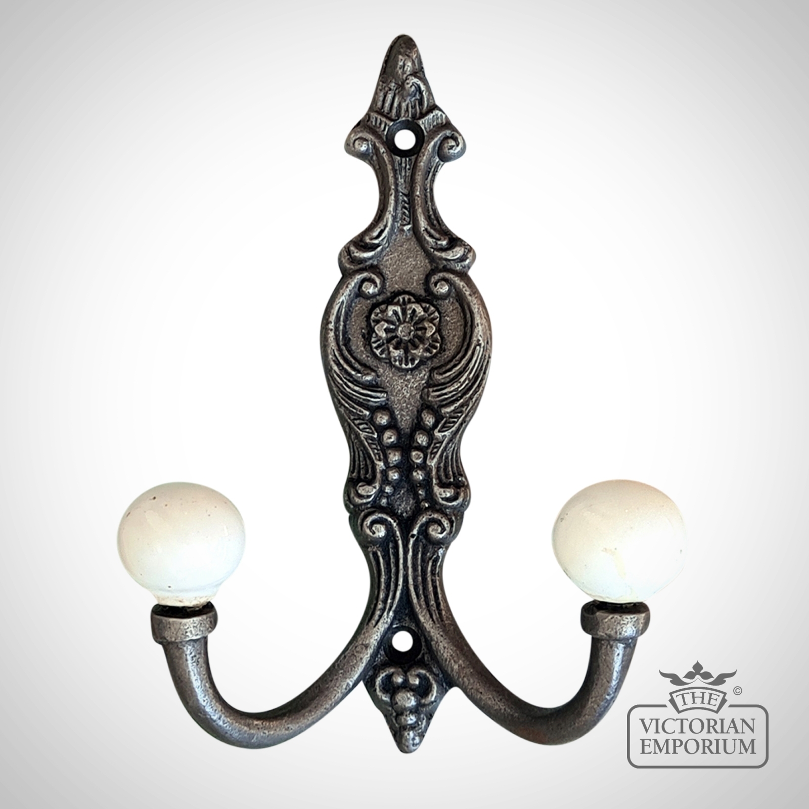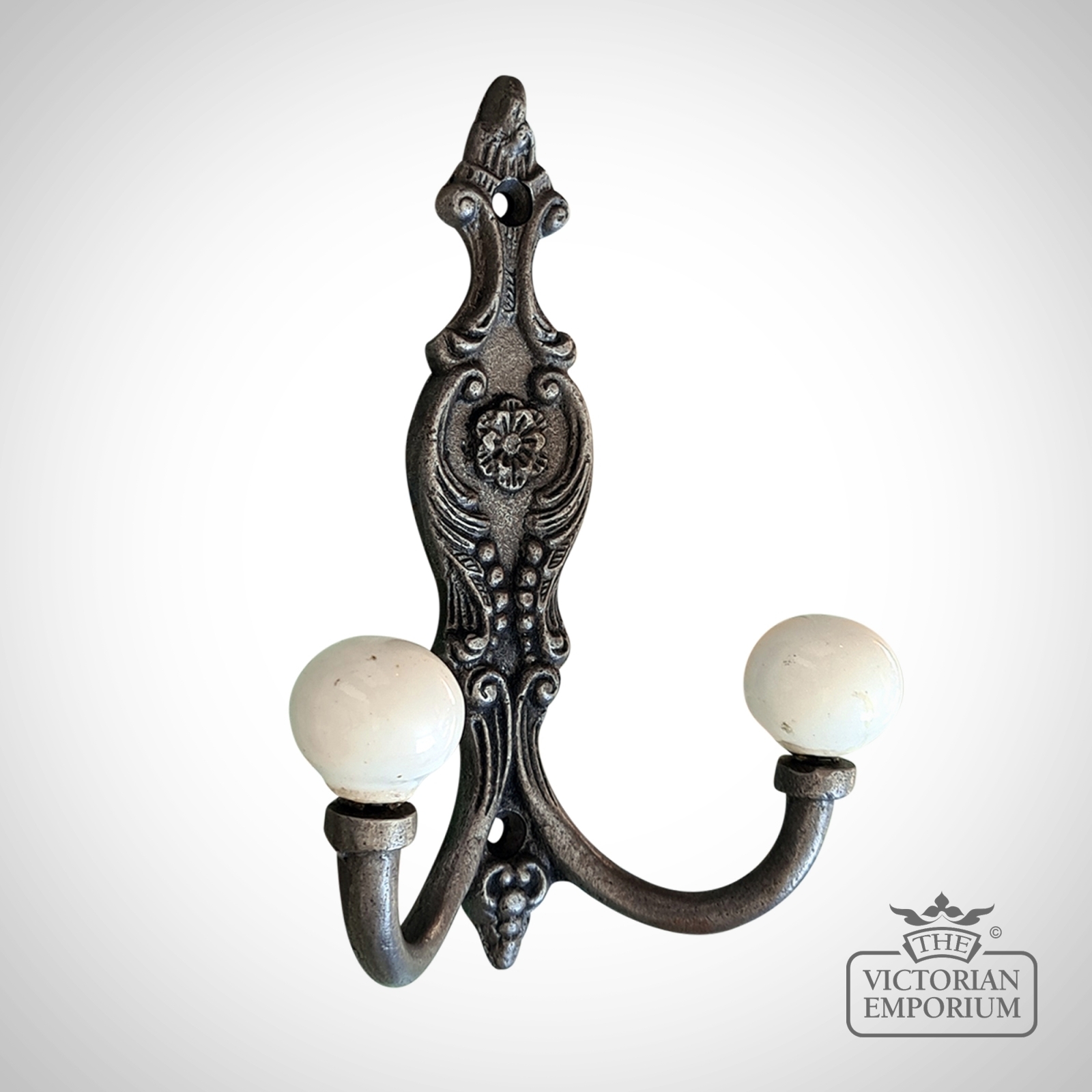The 2x ceramic ball French style Hat and Coat Hook is a versatile and stylish choice, seamlessly combining practicality with classic design. It has a natural iron finish, made from Solid Cast Iron, traditionally cast with a protective wax coating (a natural finish that will age over time)