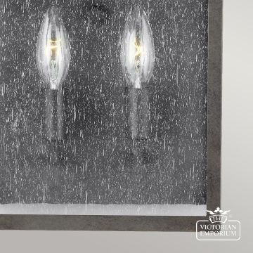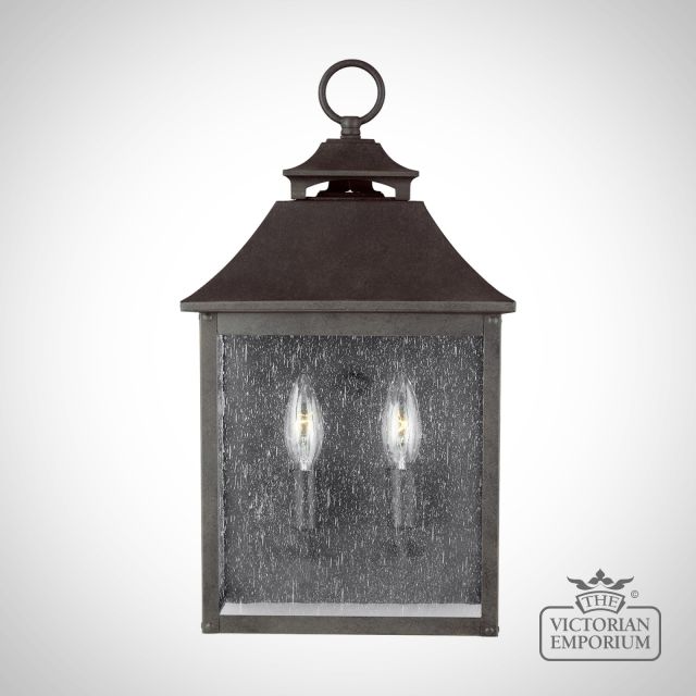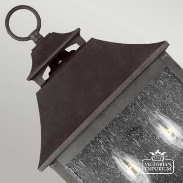 The Galena outdoor lantern collection has an Elegant simple design with clean lines and Seeded Glass, it is available in a Sable finish. IP44 rated.