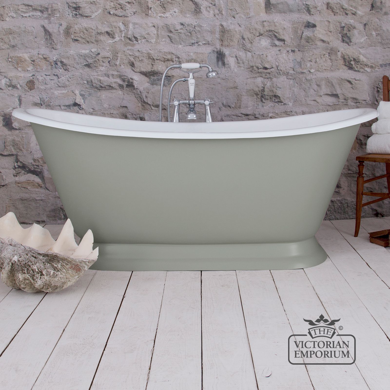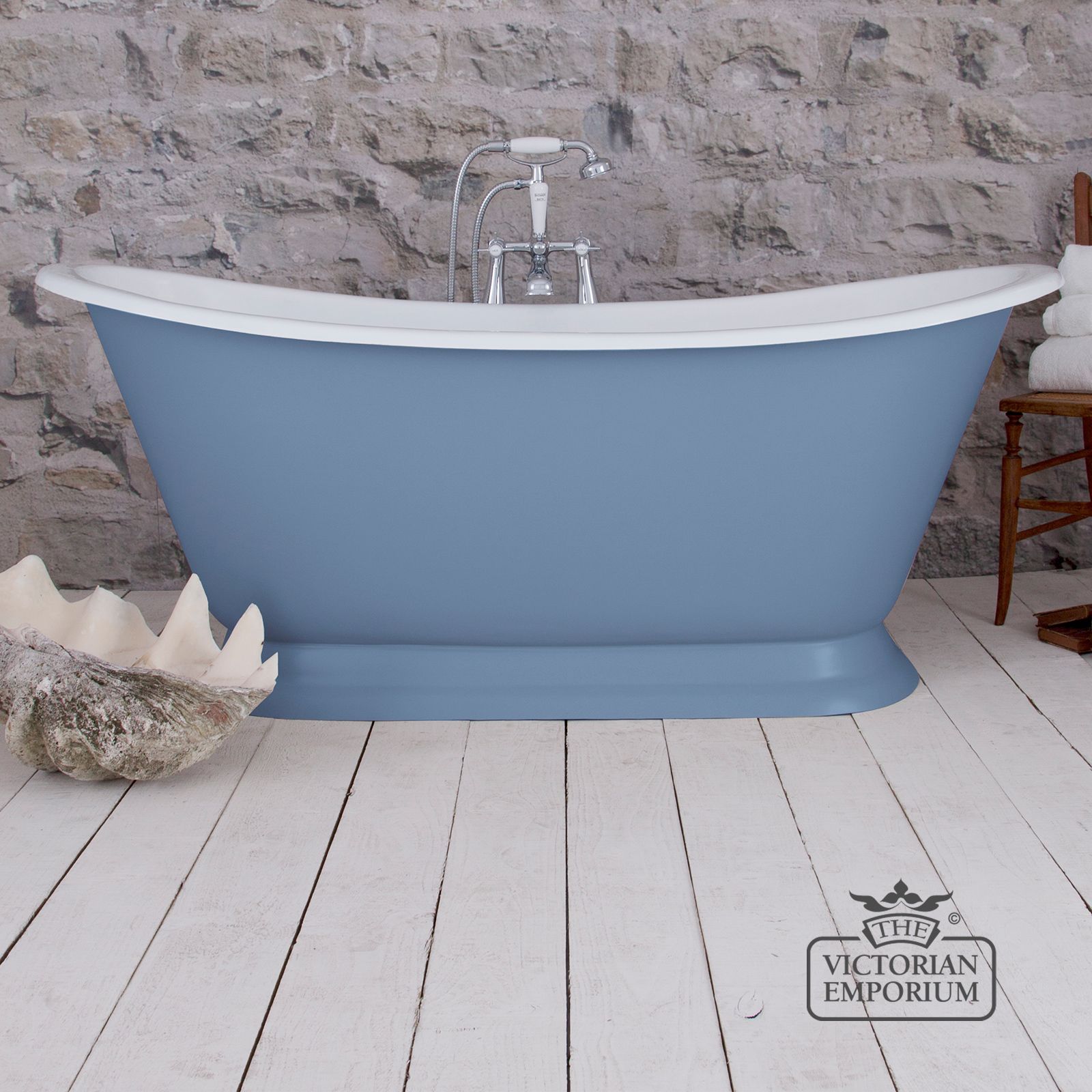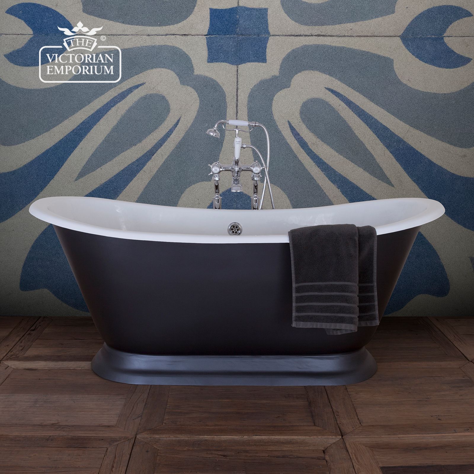This elegant and symmetrical cast iron bath on a plinth can be painted any colour of your choice on the outside. This is more lightweight than some of the other models