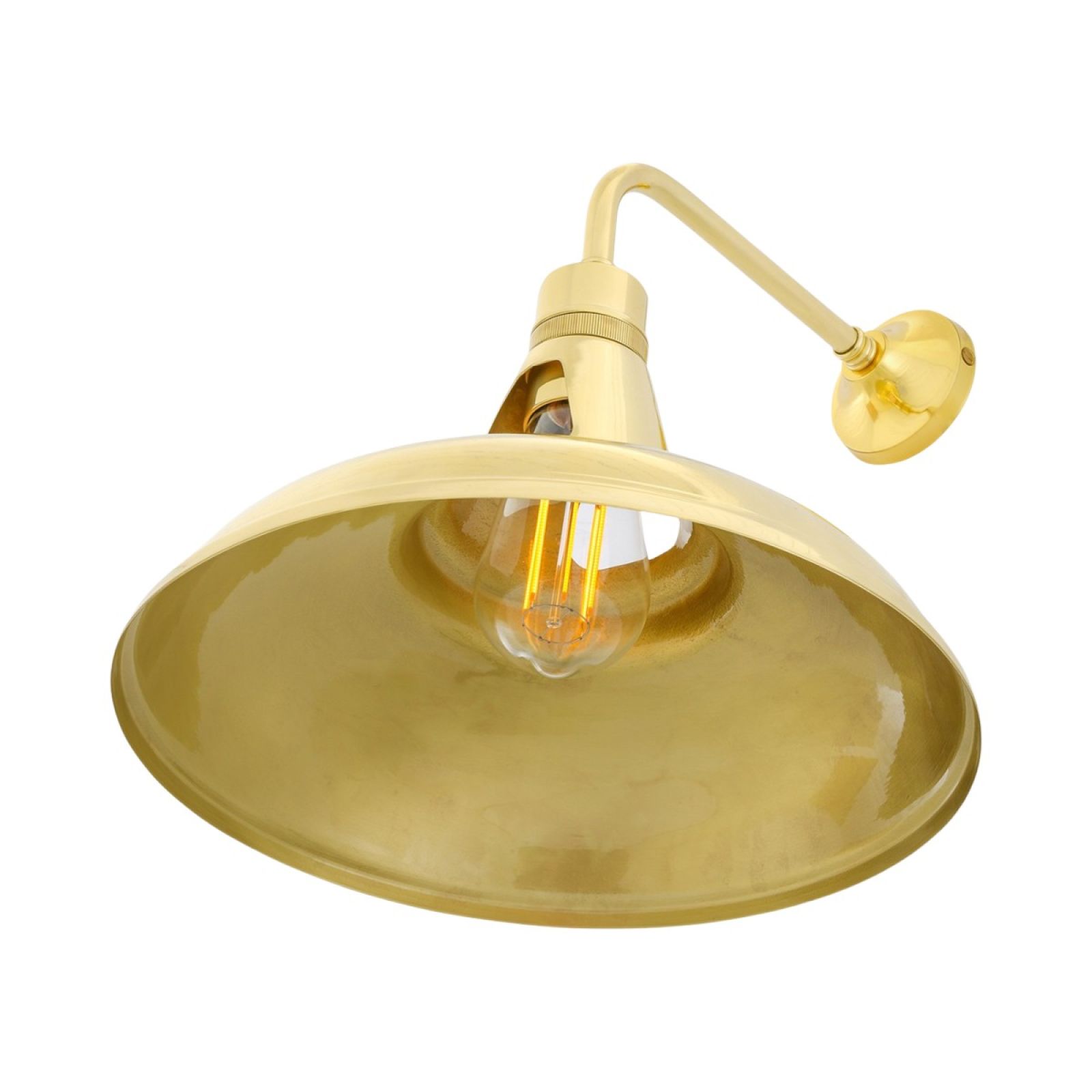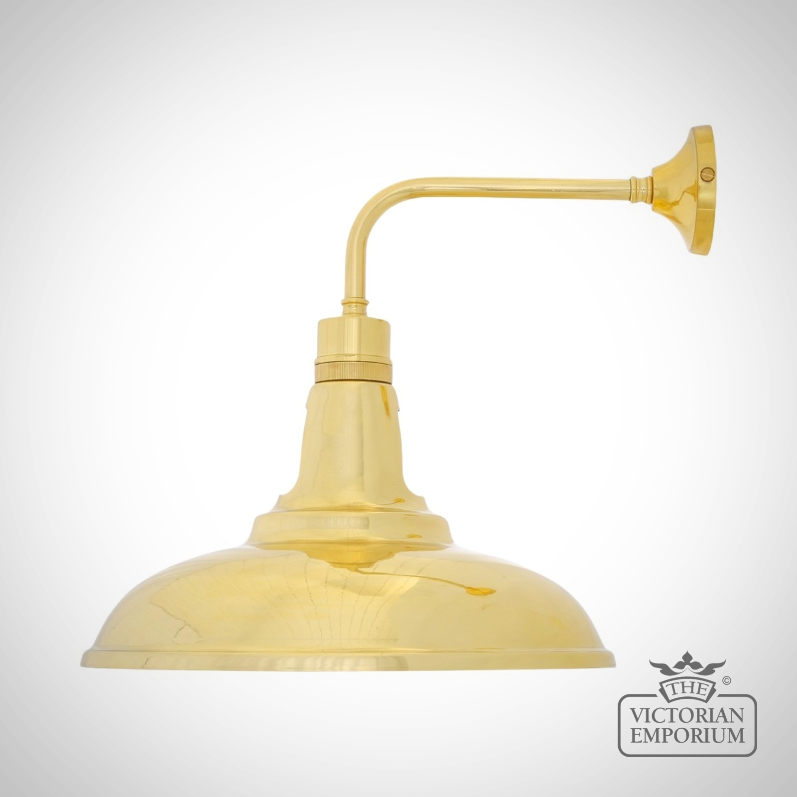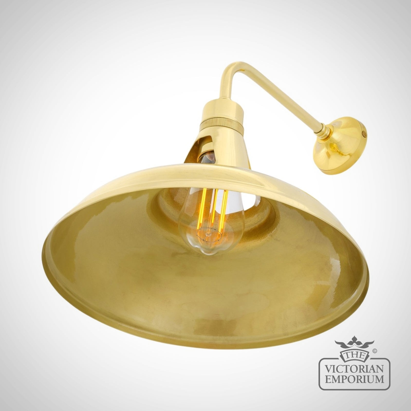 The Geneva wall light is a simple, industrial style down wall light with a factory lamp shade with a simple dome wall plate and 90 degree arm. A lamp holder fixed to the arm secures the factory-style lamp shade in place.