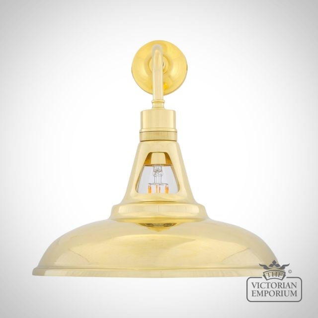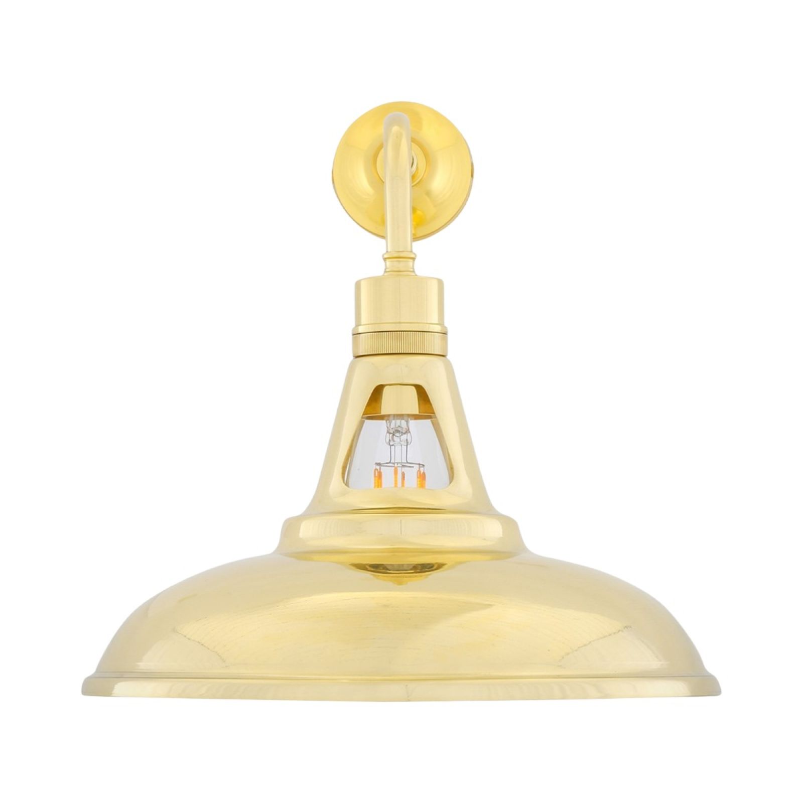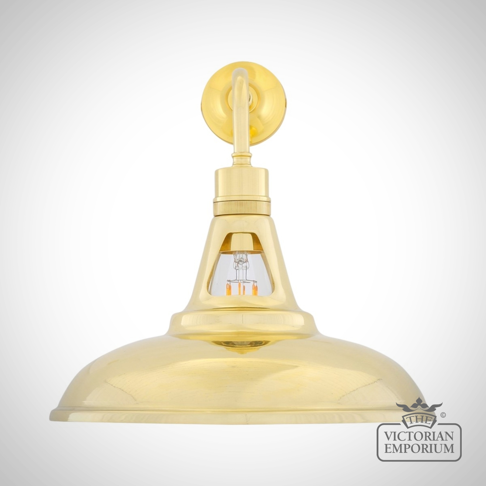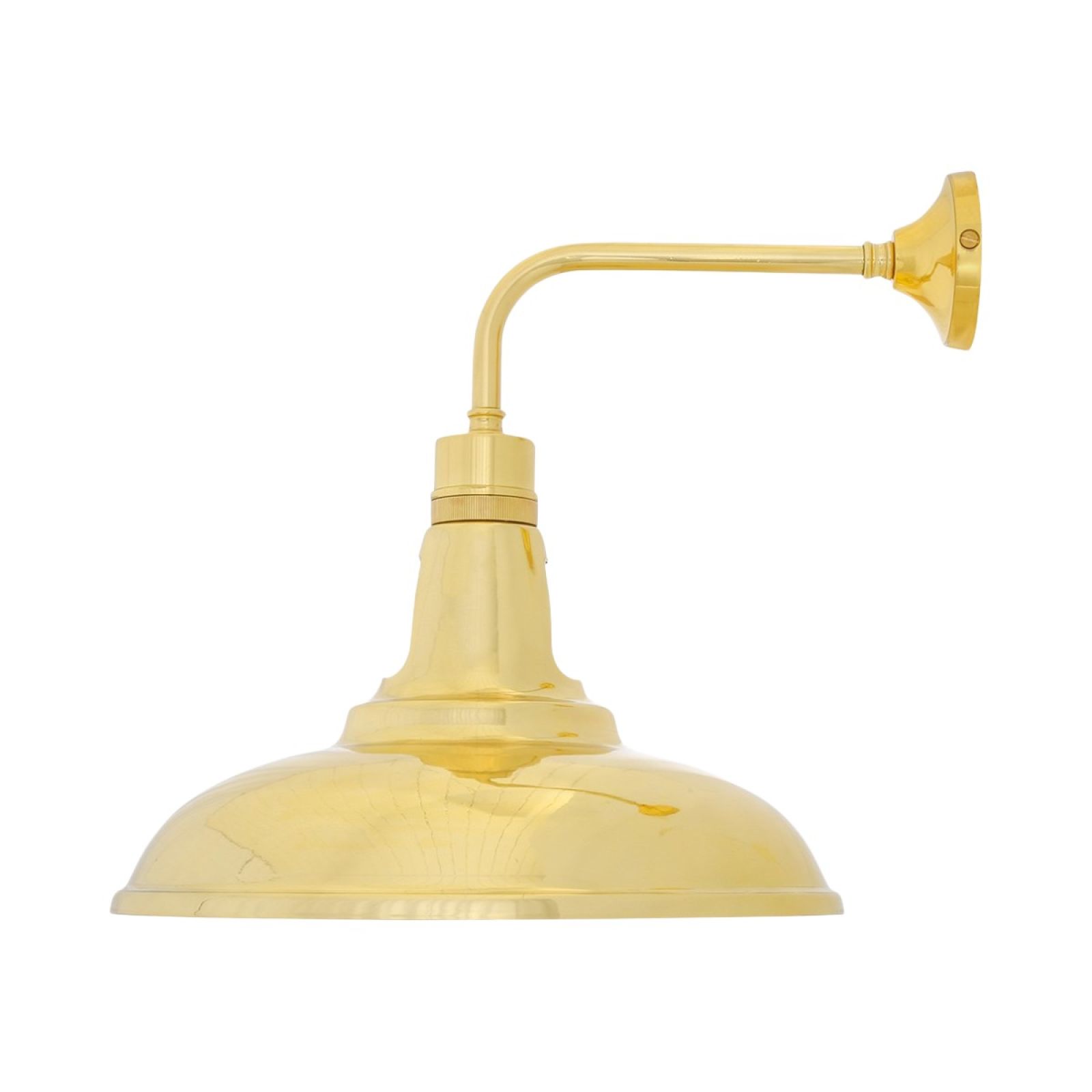 The Geneva wall light is a simple, industrial style down wall light with a factory lamp shade with a simple dome wall plate and 90 degree arm. A lamp holder fixed to the arm secures the factory-style lamp shade in place.