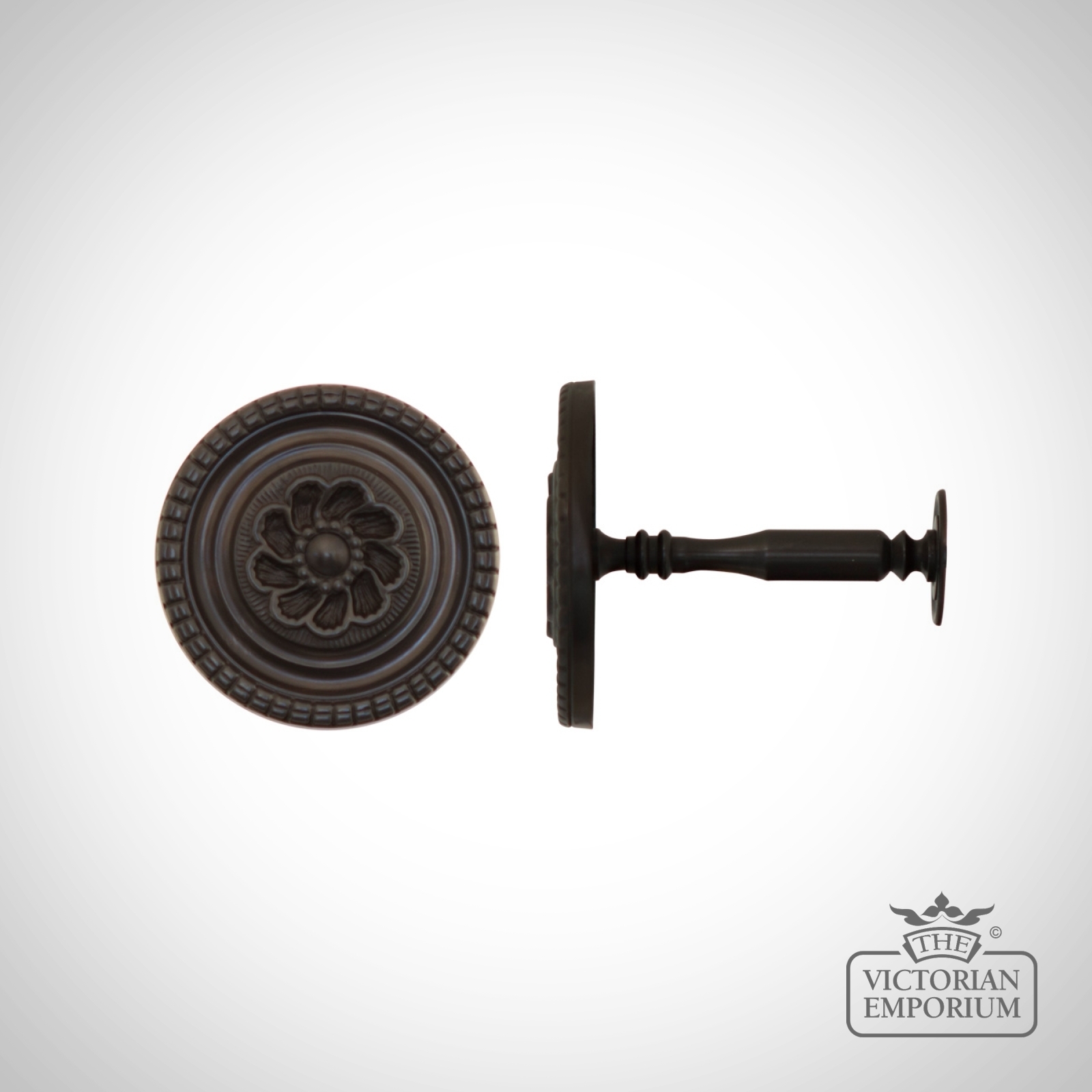 This Georgian Rose Brass Curtain Holdback is available in polished and lacquered Brass and can also be plated in 11 beautiful finishes: Distressed Brass, Burnished Brass, Antique Brass, Bronze, Light Bronze, Armour bright, Satin Nickel, Polished Nickel, Satin Chrome, Polished Chrome, and Gun Metal.