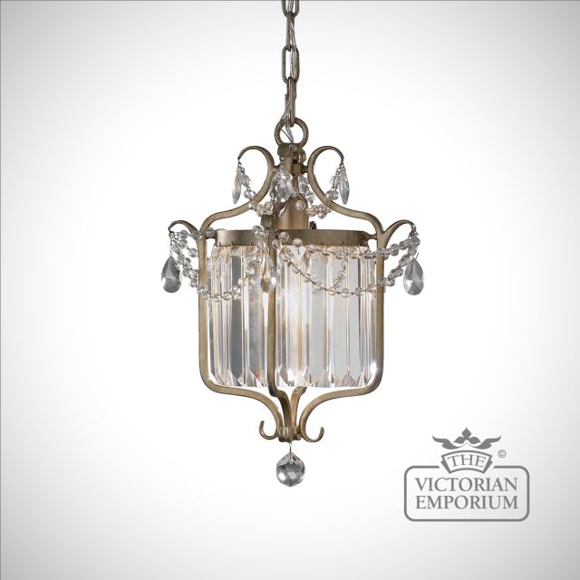With influence from elegant Italian interiors of the 1900’s, the Gianne pendant features delicate crystals with a hand painted Gilded Silver finish.
