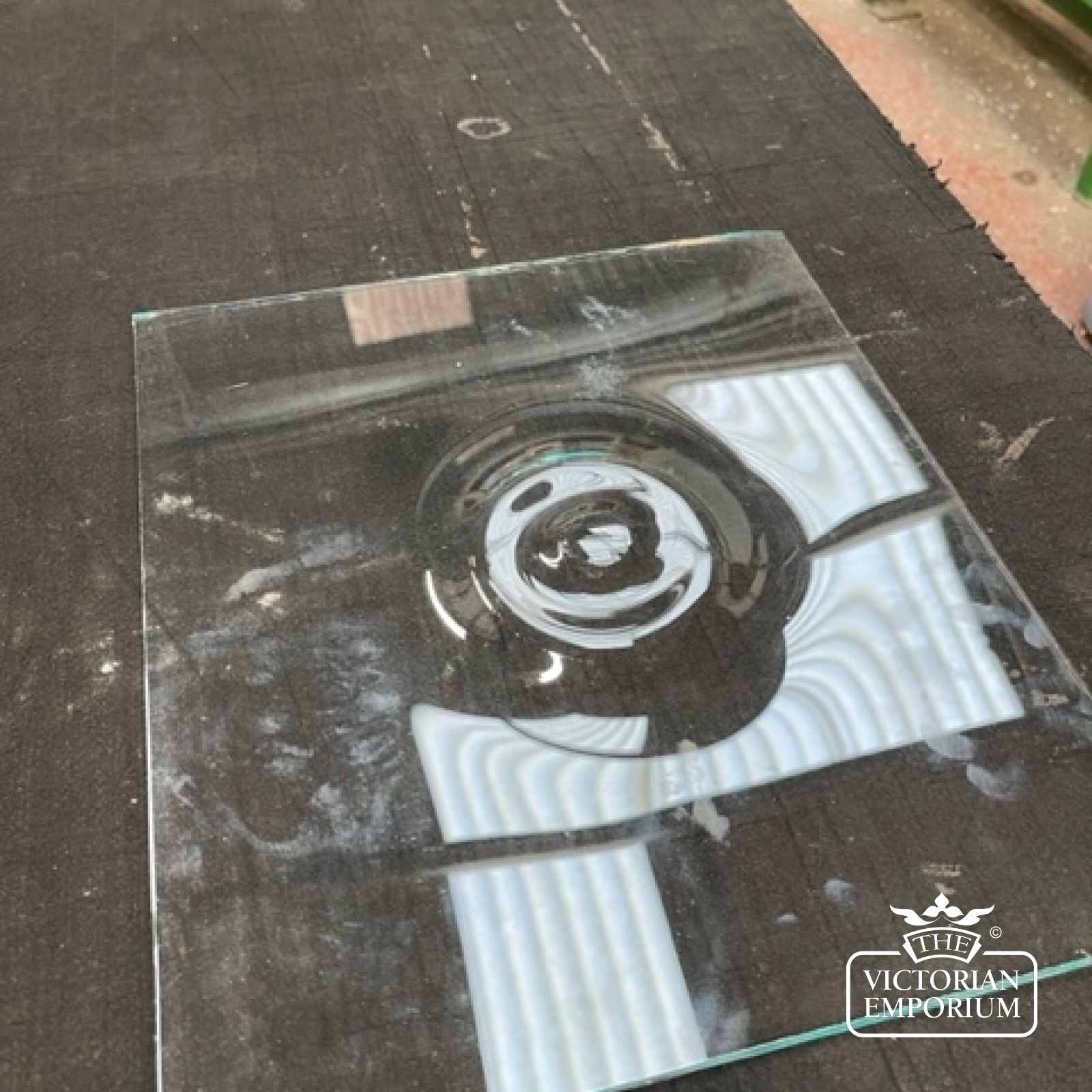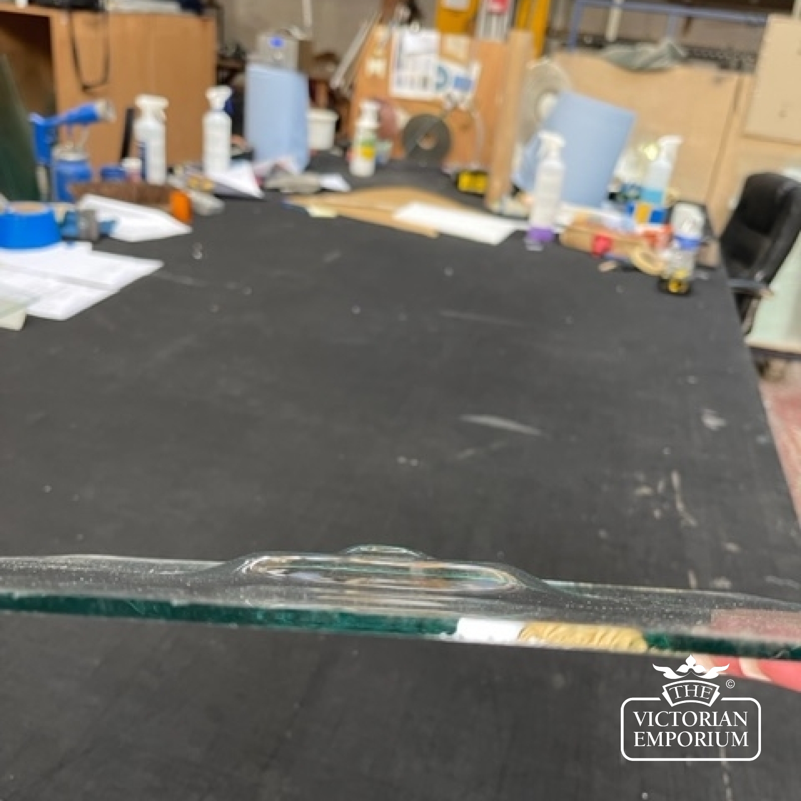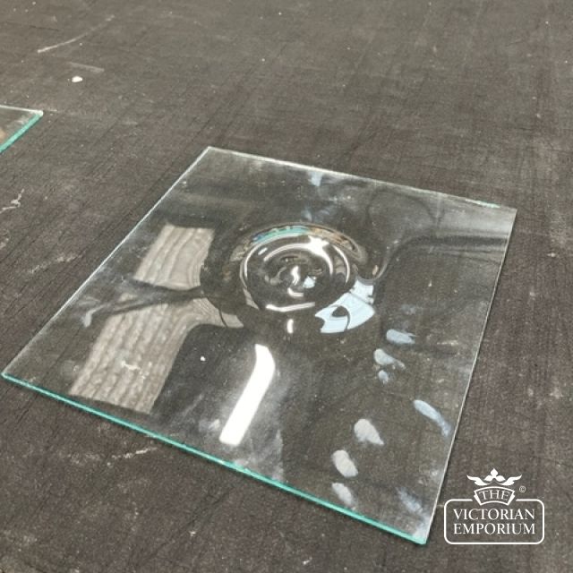 Clear machine-made bullseye glass (4 mm) for Victorian doors and small windows. Sizes 229–508 mm. Optional double-glazed units.