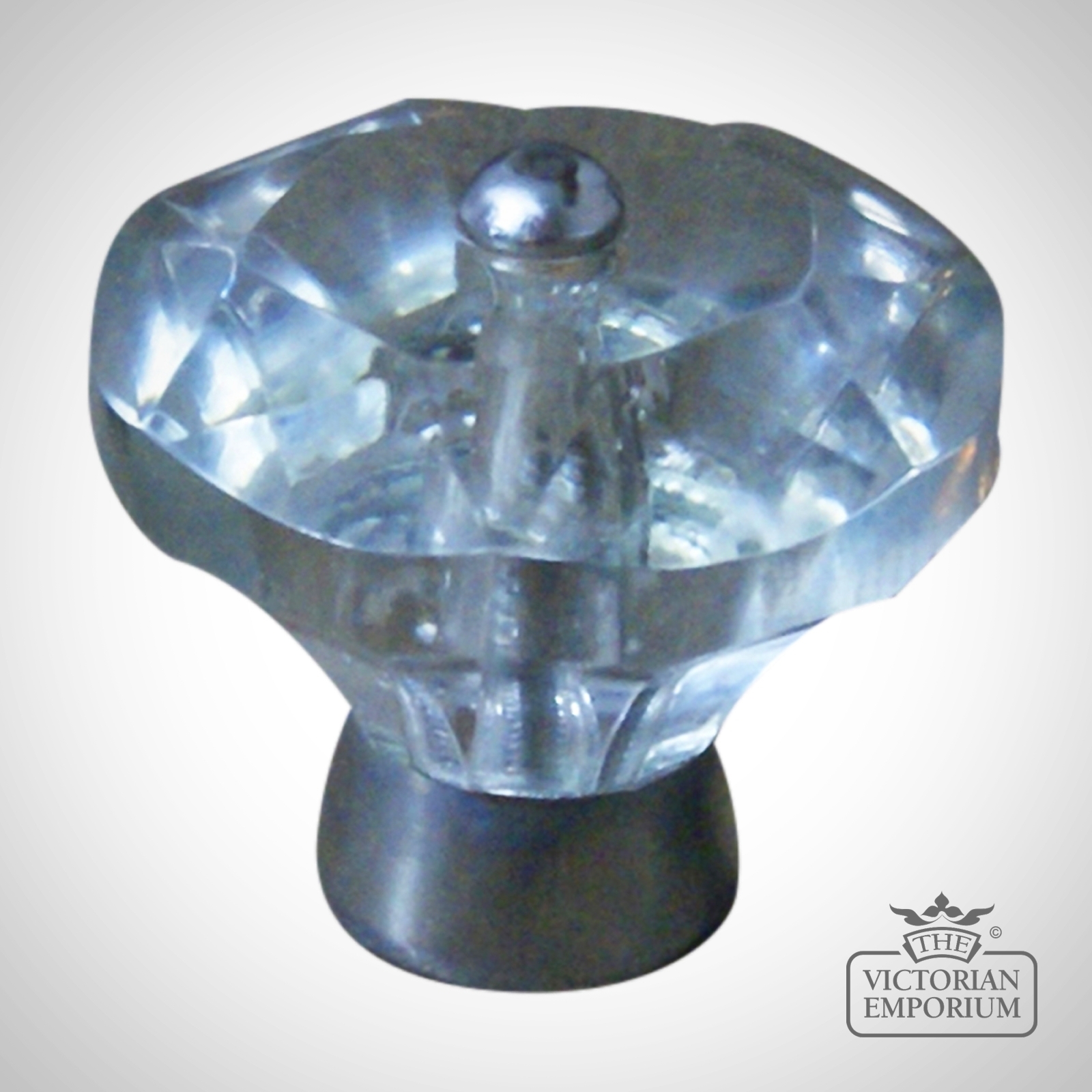 Glass Faceted Cupboard Knob Chrome Bezel Flower
