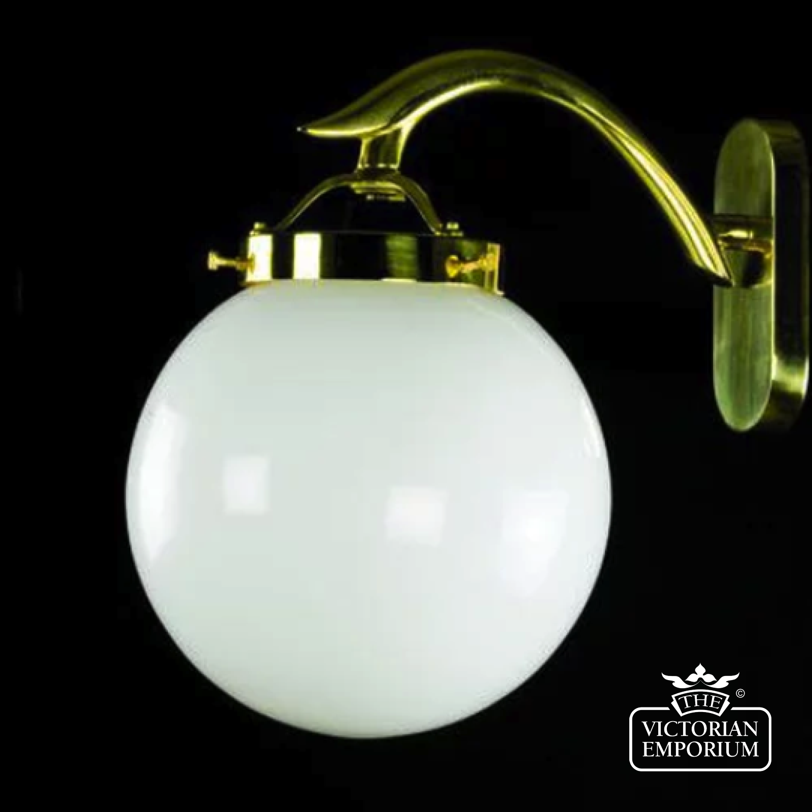 Elegant and stylish, cast wall sconce with a round opaque globe glass shade in a choice of finishes. Shown above in the polished gold finish.