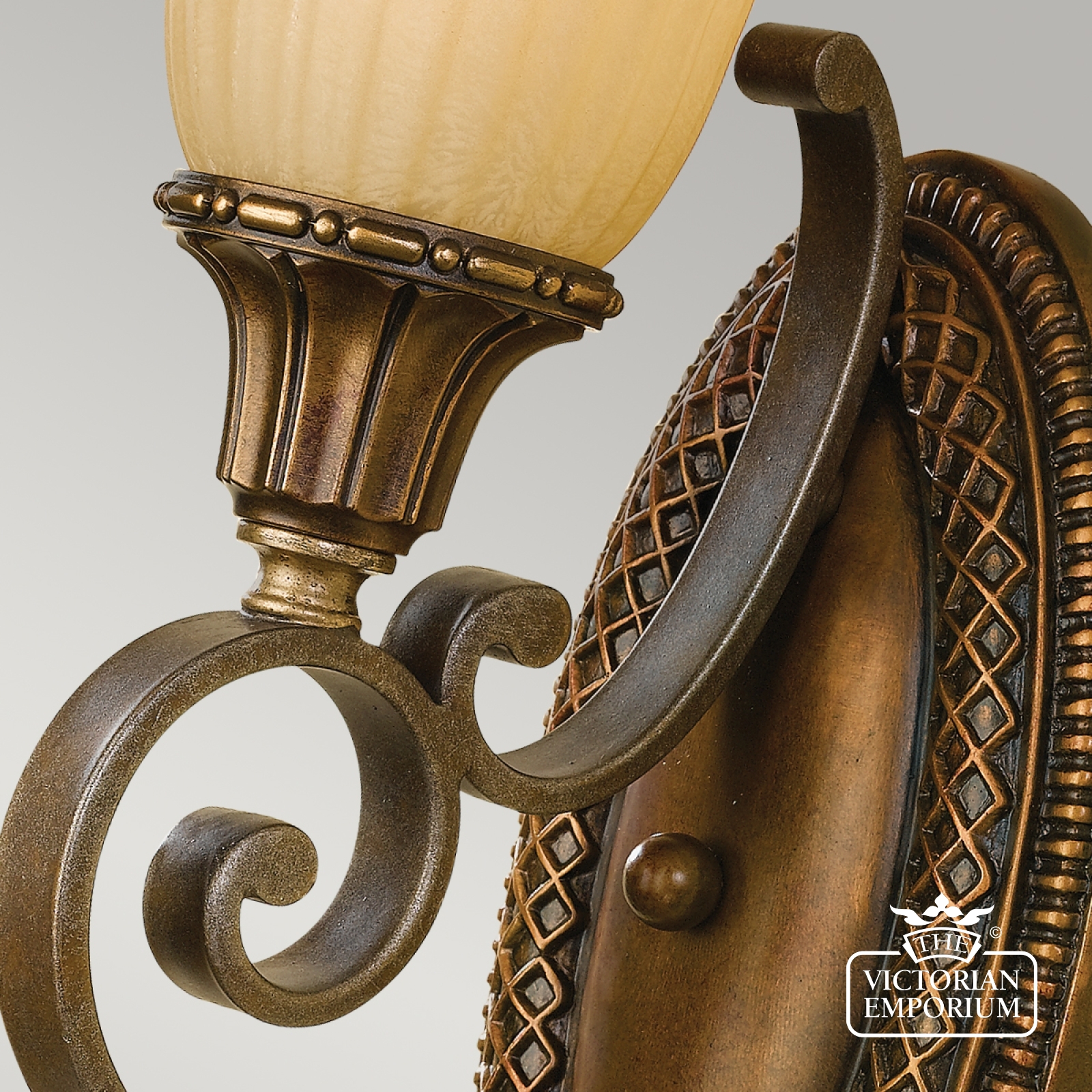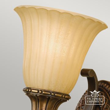 This beautiful sconce is composed of a structure coloured gold and bronze and india scavo glass giving a discintive warm colour.
