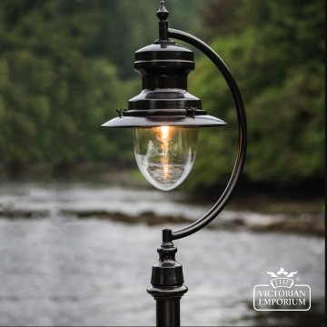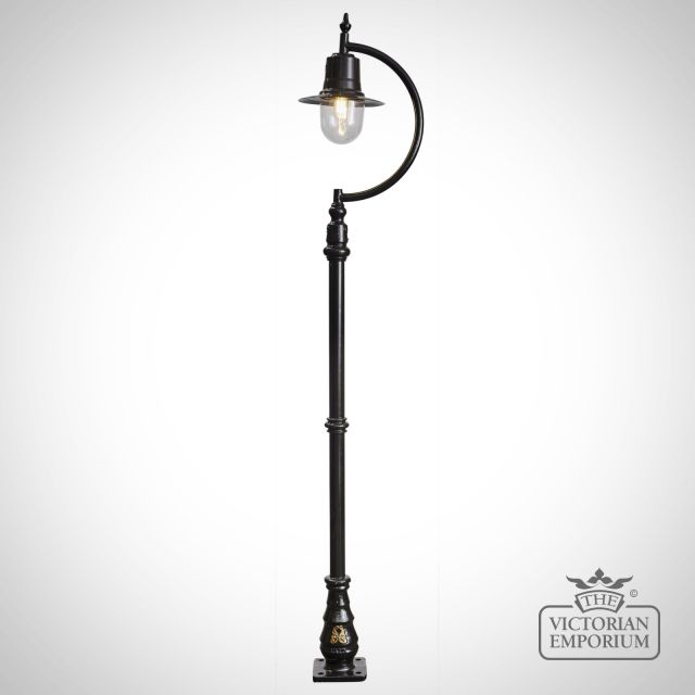 Traditional heritage outdoor cast iron lamp post topped with traditional lantern. Available in 4 size options. Station Master style lantern with *Lifetime Guarantee*
