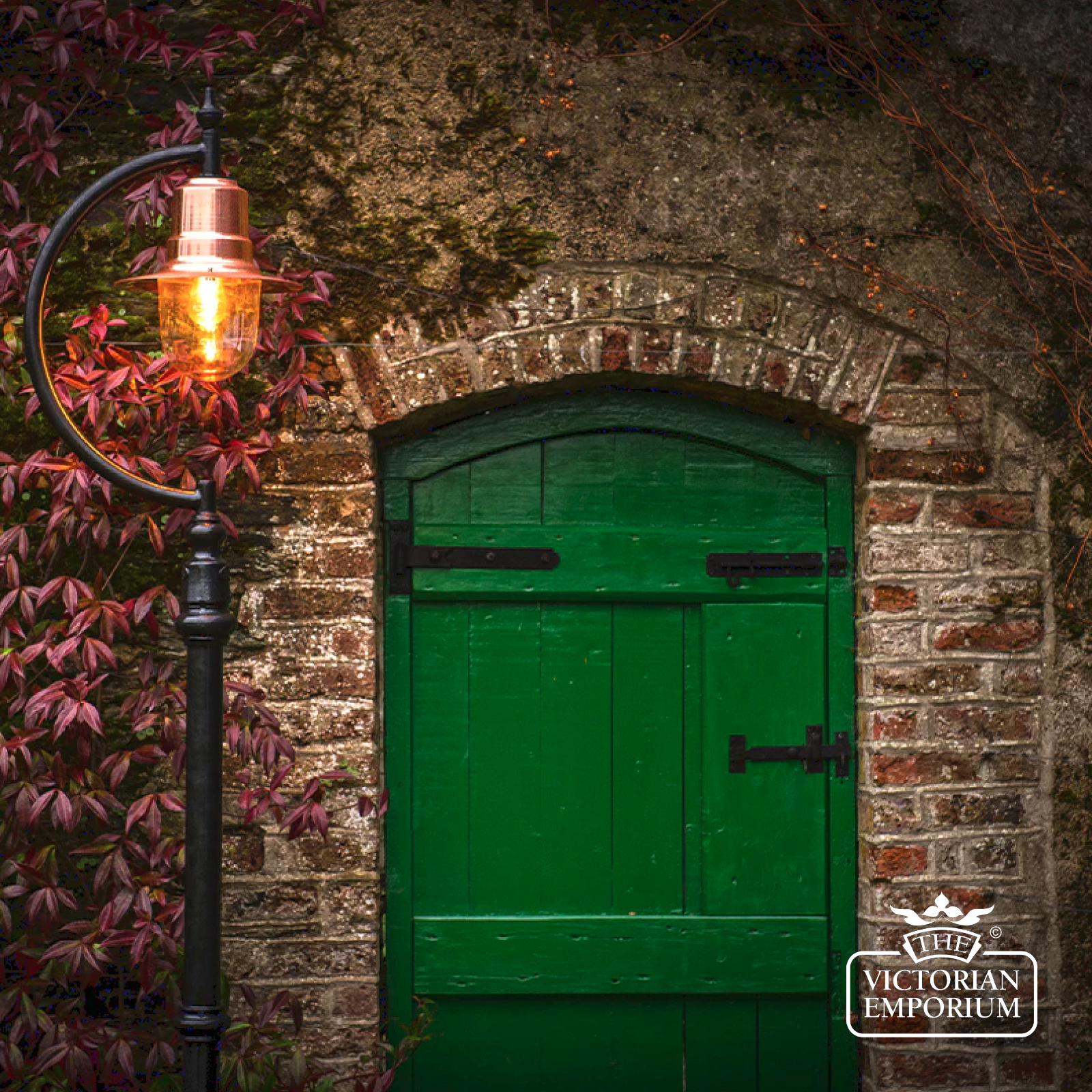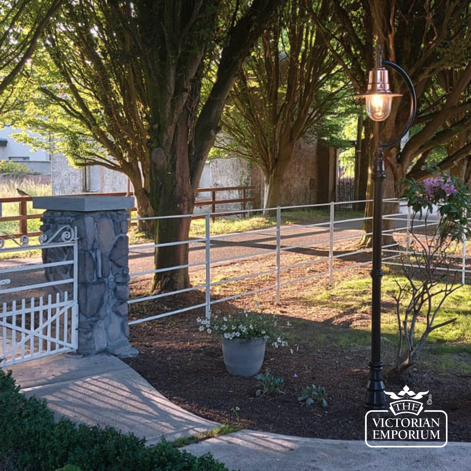 Goose Neck Outdoor Copper Lantern on Cast Iron Lamp Post in a Choice of Sizes