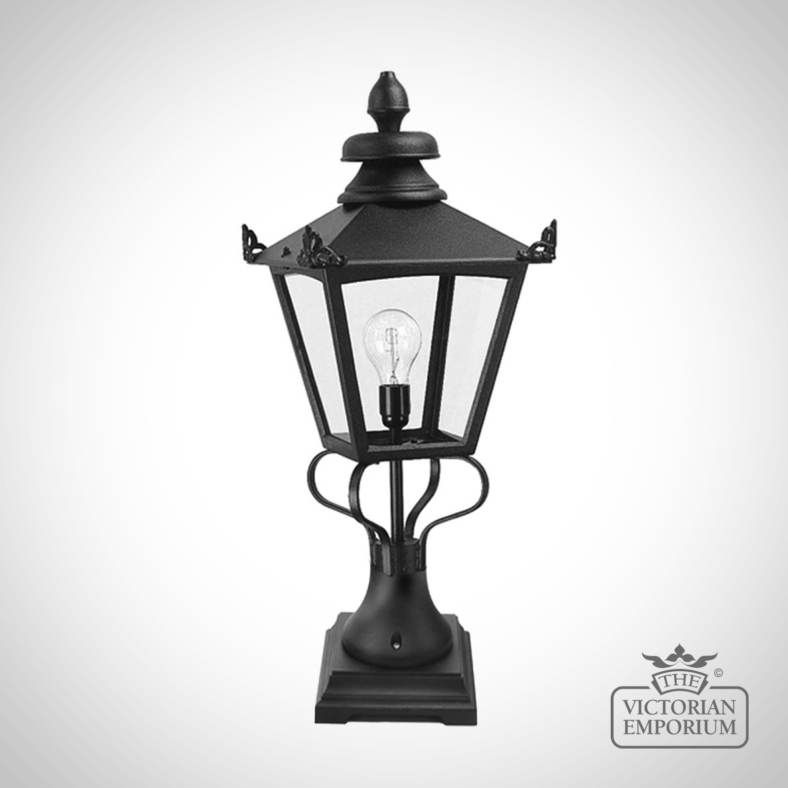Classic Pedestal Lantern in a Victorian style with decorative corner details and typical period frog connecting the pedestal with the lantern