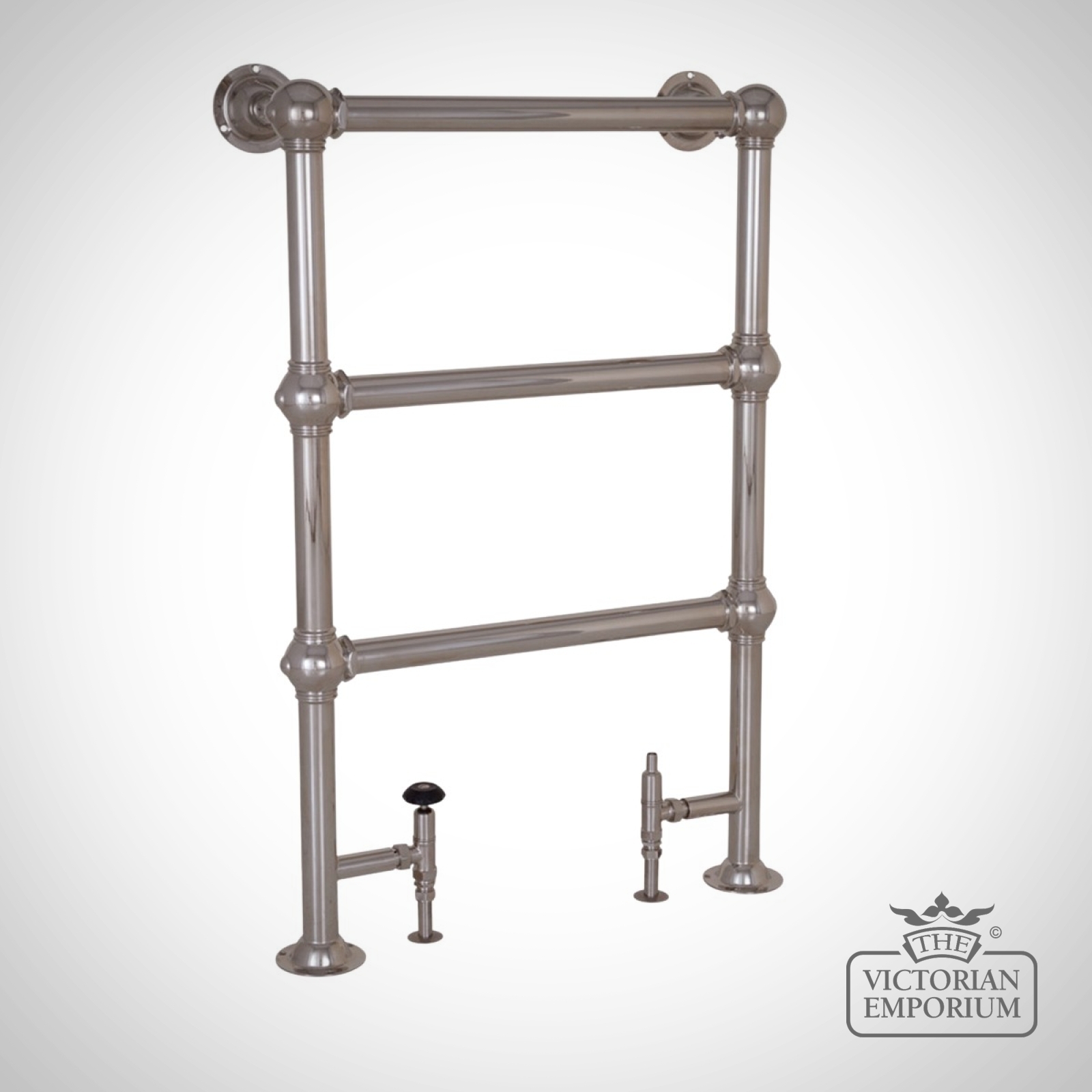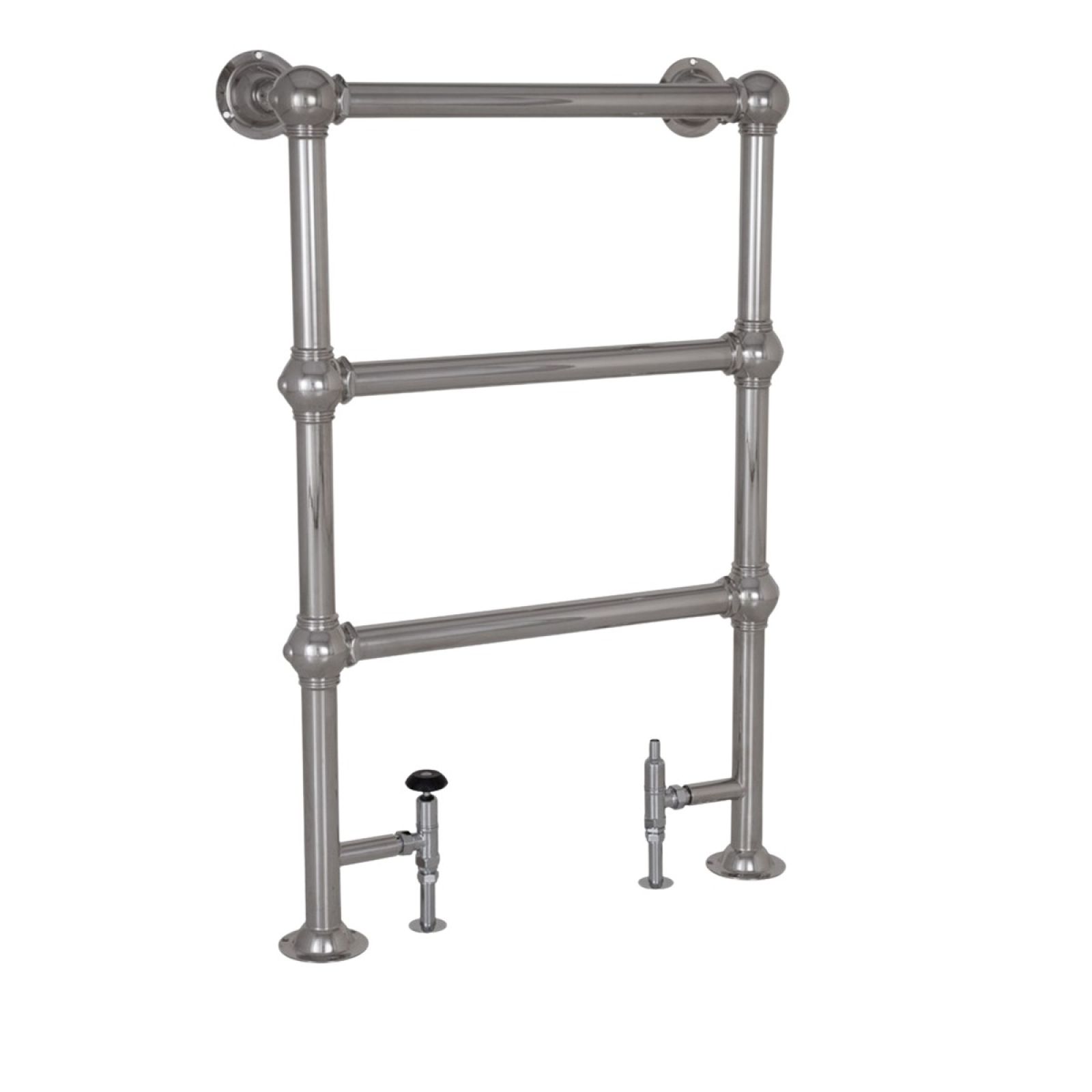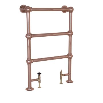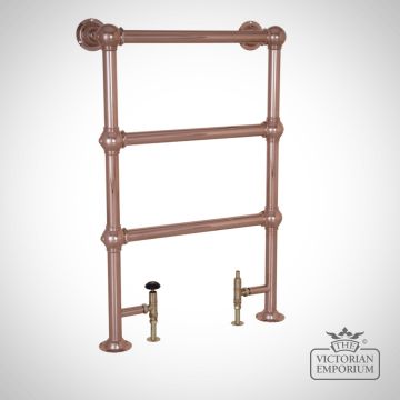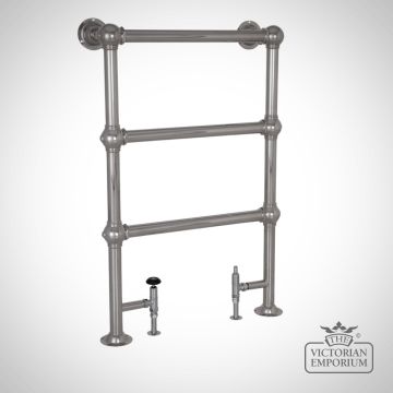 Small floor mounted simple heated towel rail made from steel in a chrome, nickel or copper finish