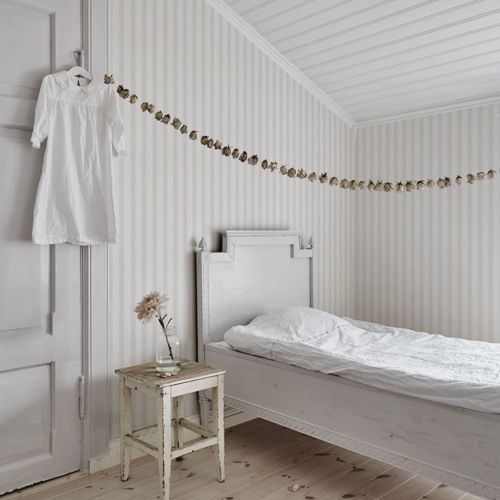 Gustav wallpaper has an elegant simplicity that is inspired by the beautiful silk drapes and furniture fabrics of the 18th century and is named after Gustav III, the King of Sweden during the Gustavian era.