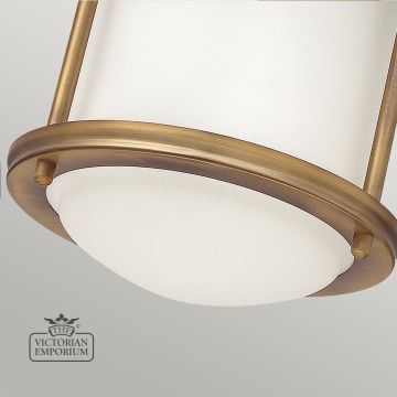 Hadrian is a retro-styled collection and this mini pendant can be ordered with Opal or Clear Glass, and in a choice of 4 finishes.