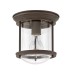 This mini flush pendant features a slim design that will complement a variety of decors and are a great decorative alternative to recessed lighting. Hadrian is a retro-styled collection available in four classic finish options: Antique Nickel, Brushed Bronze, Chrome and Oil Rubbed Bronze and Opal or Clear Glass.