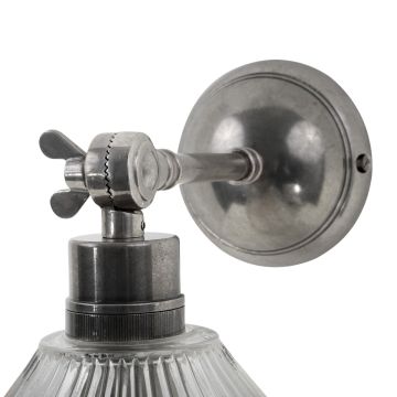The Hale Prismatic Railway Glass Wall Light creates a warm diffused glow when lit and features a swing arm wall lamp. It provides an even, glare-free illumination with tone dependent on the bulb used.