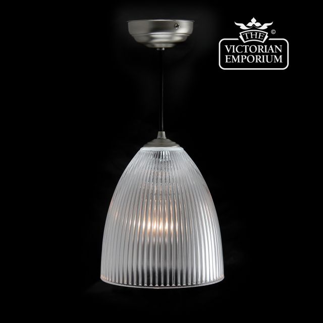 This is a pretty half oval shaped ceiling pendant featuring matt nickel metalwork