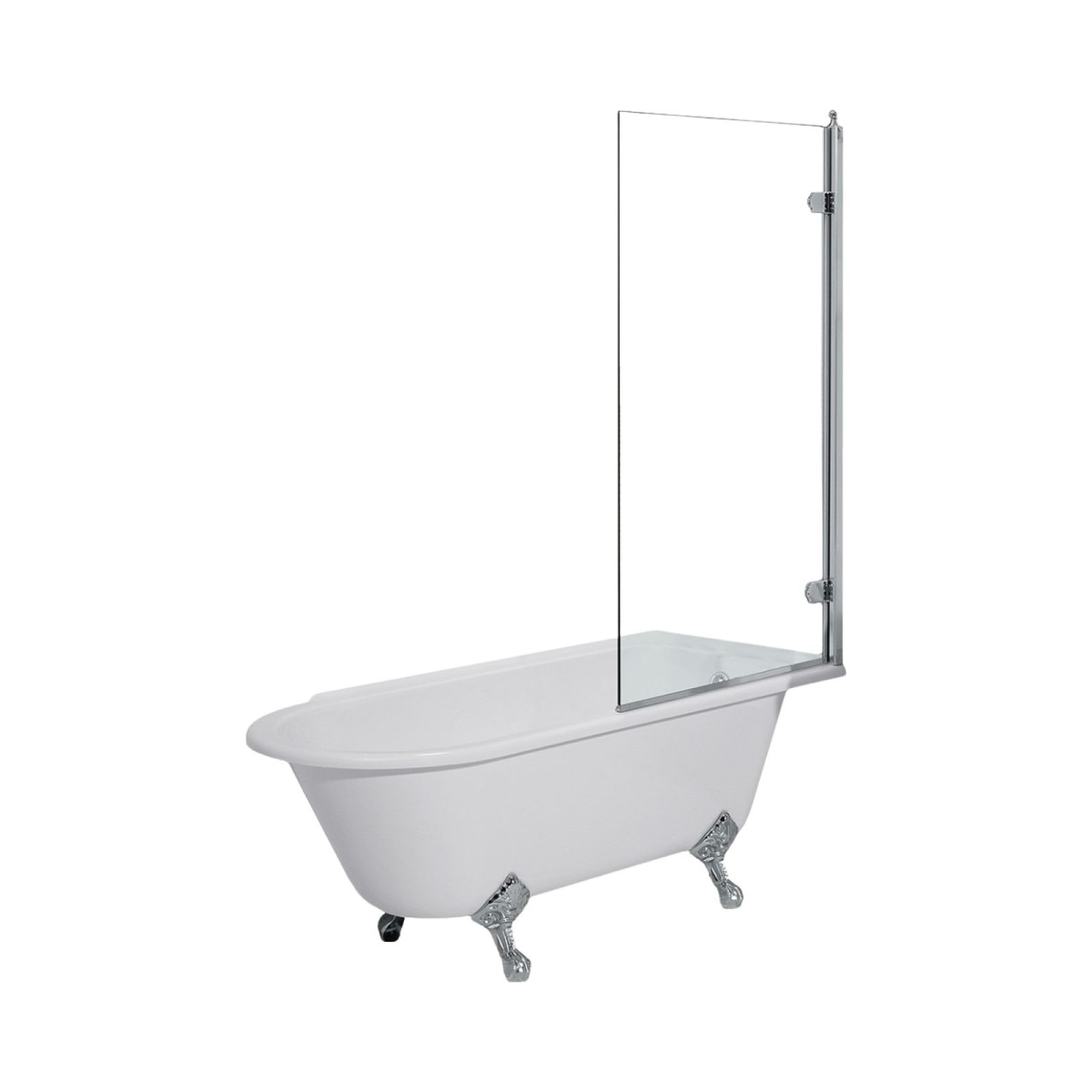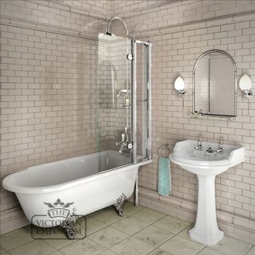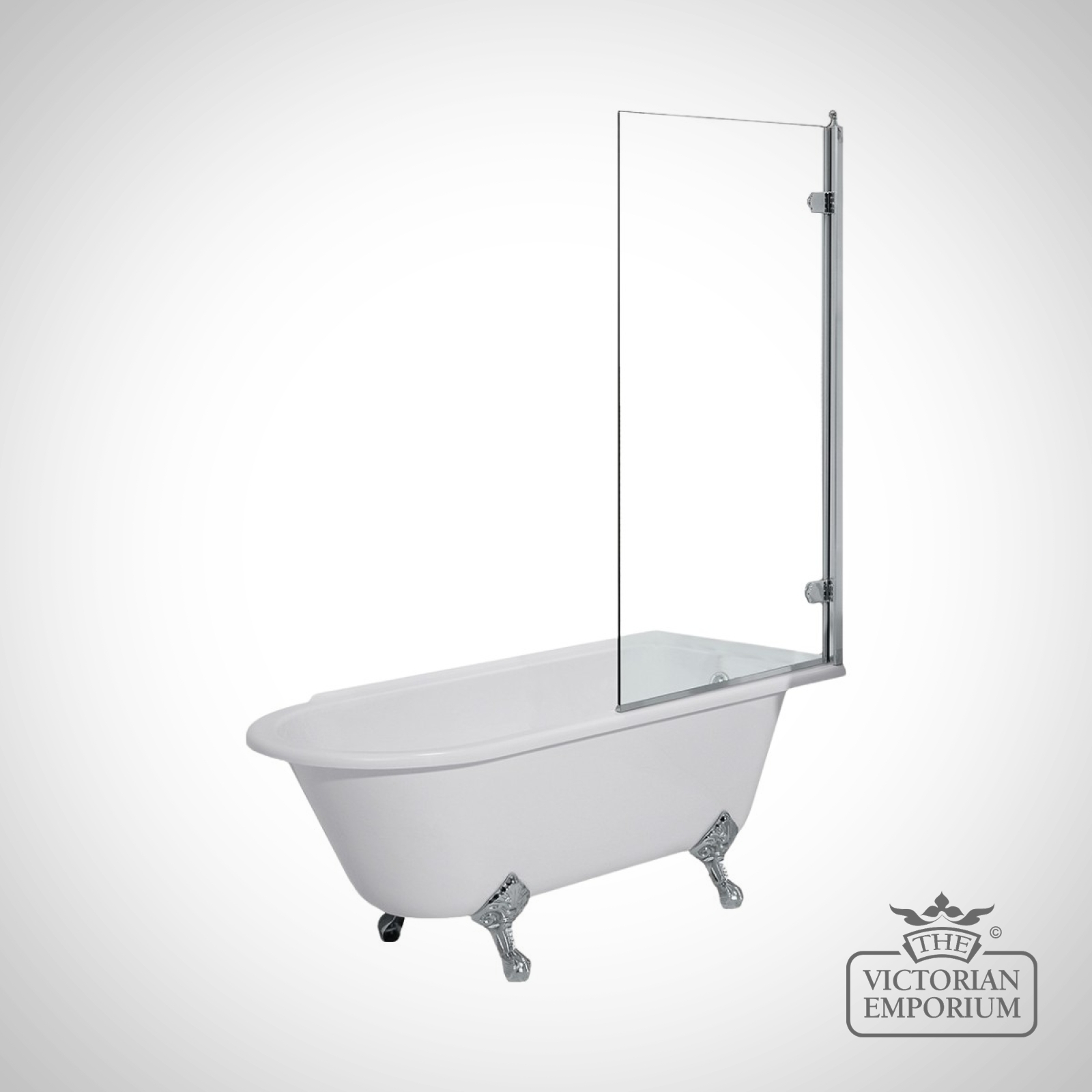 This is a classically styled roll top bath made for both bathing and showering with a matching bath screen