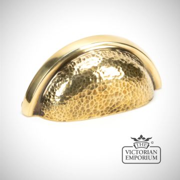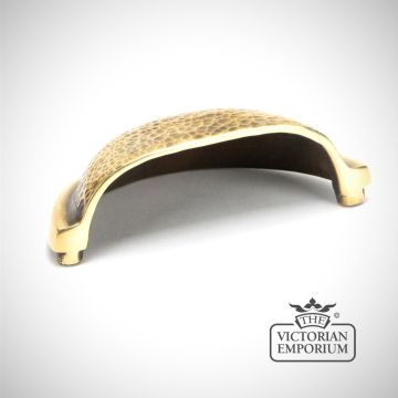 This is a really lovely brass drawer pull handle with an eye catching hammered design in an aged brass finish which really complements the design.