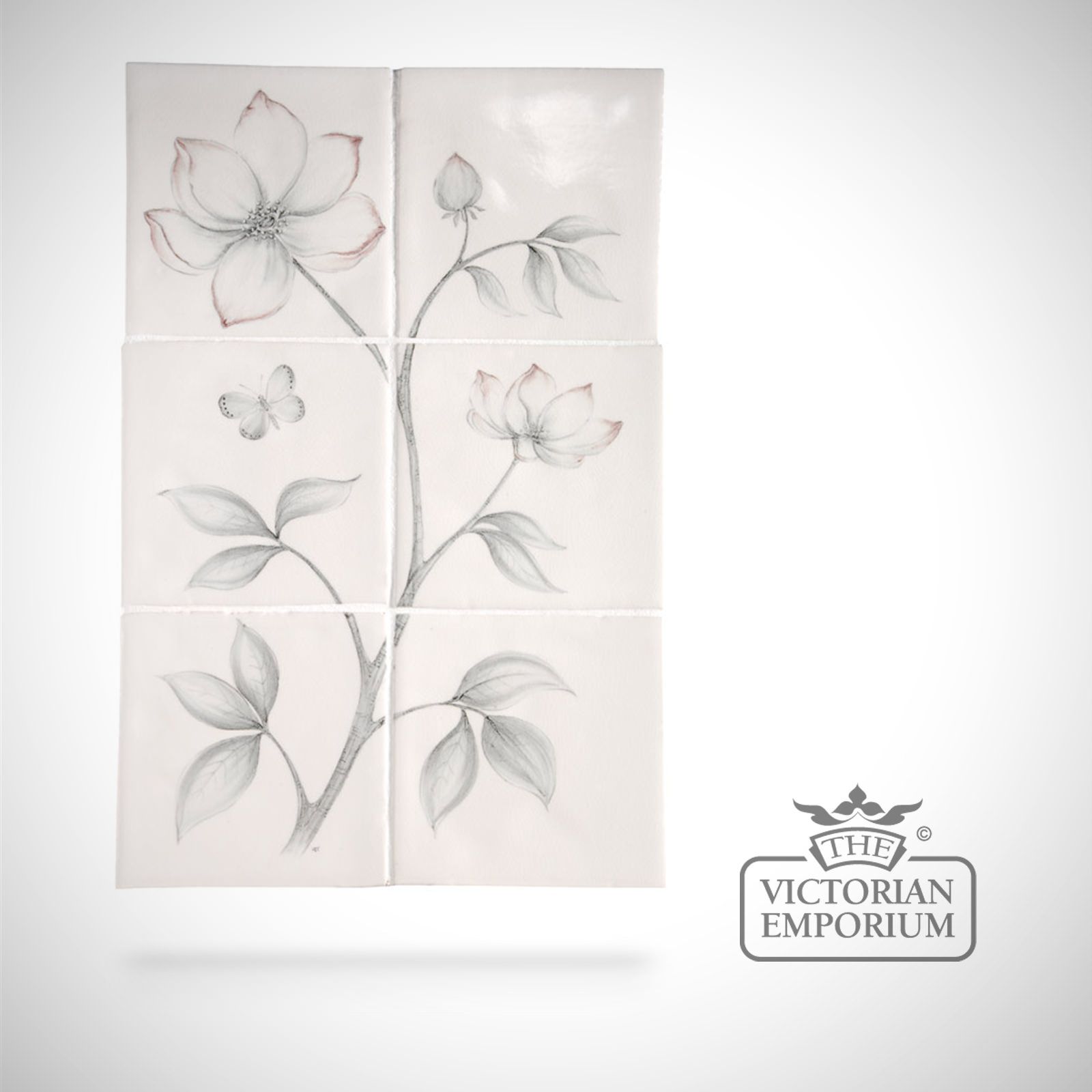 Clematis and Passion Flower painted on 6 tile panel, choice of base colours and paint colours