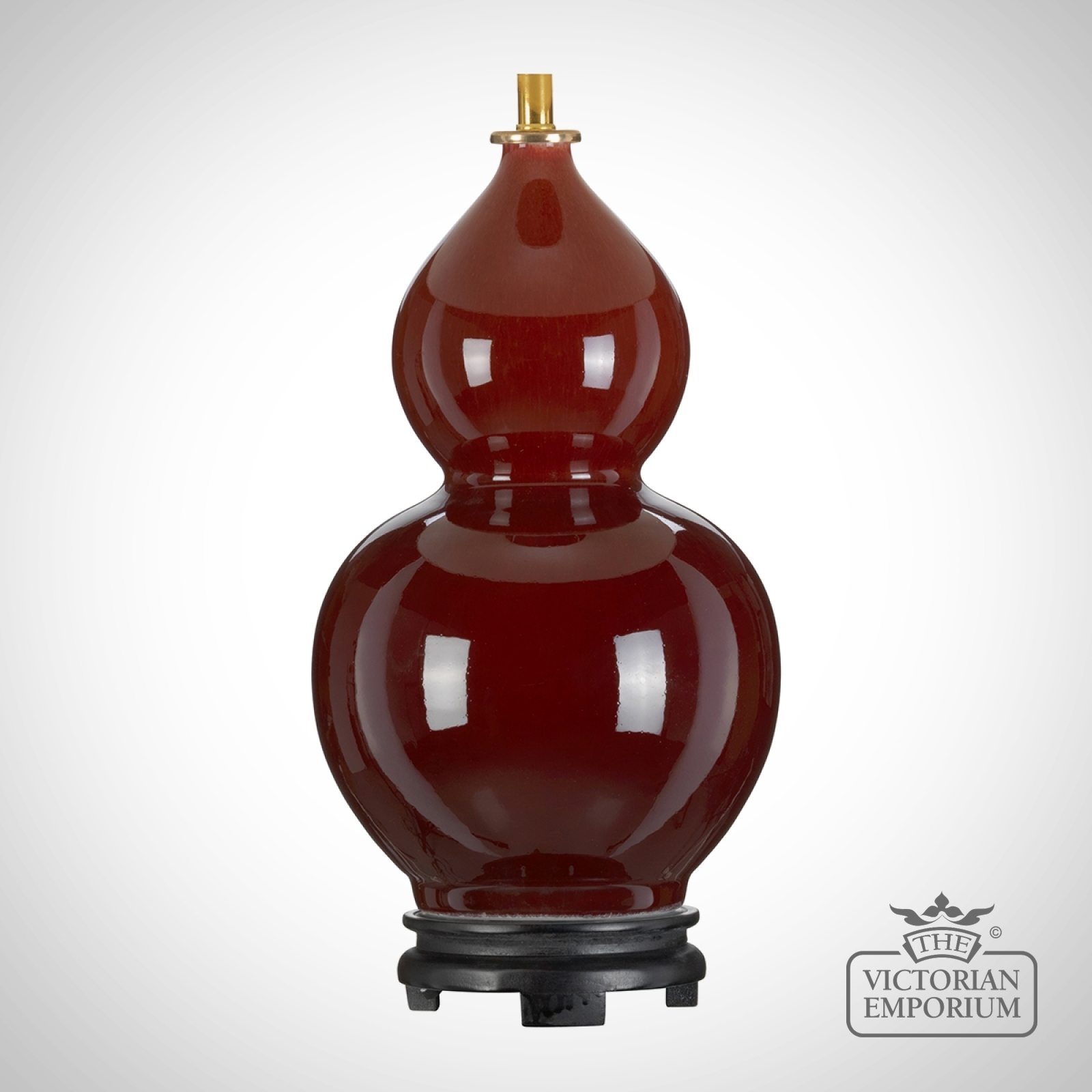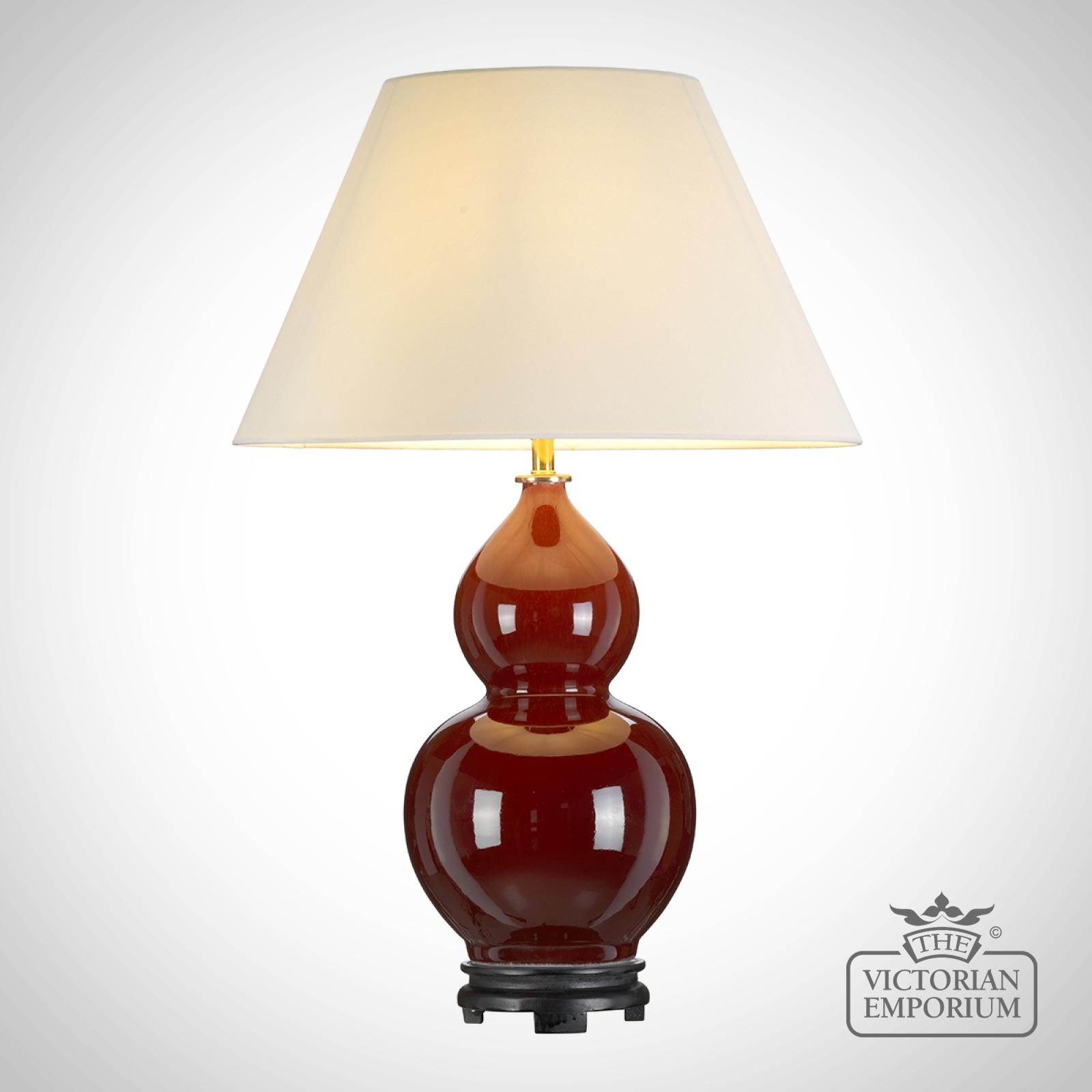 Oxblood gourd shaped oriental ceramic, completed with an Off-White Polycotton shade. Also available in Celadon and Duck Egg.
