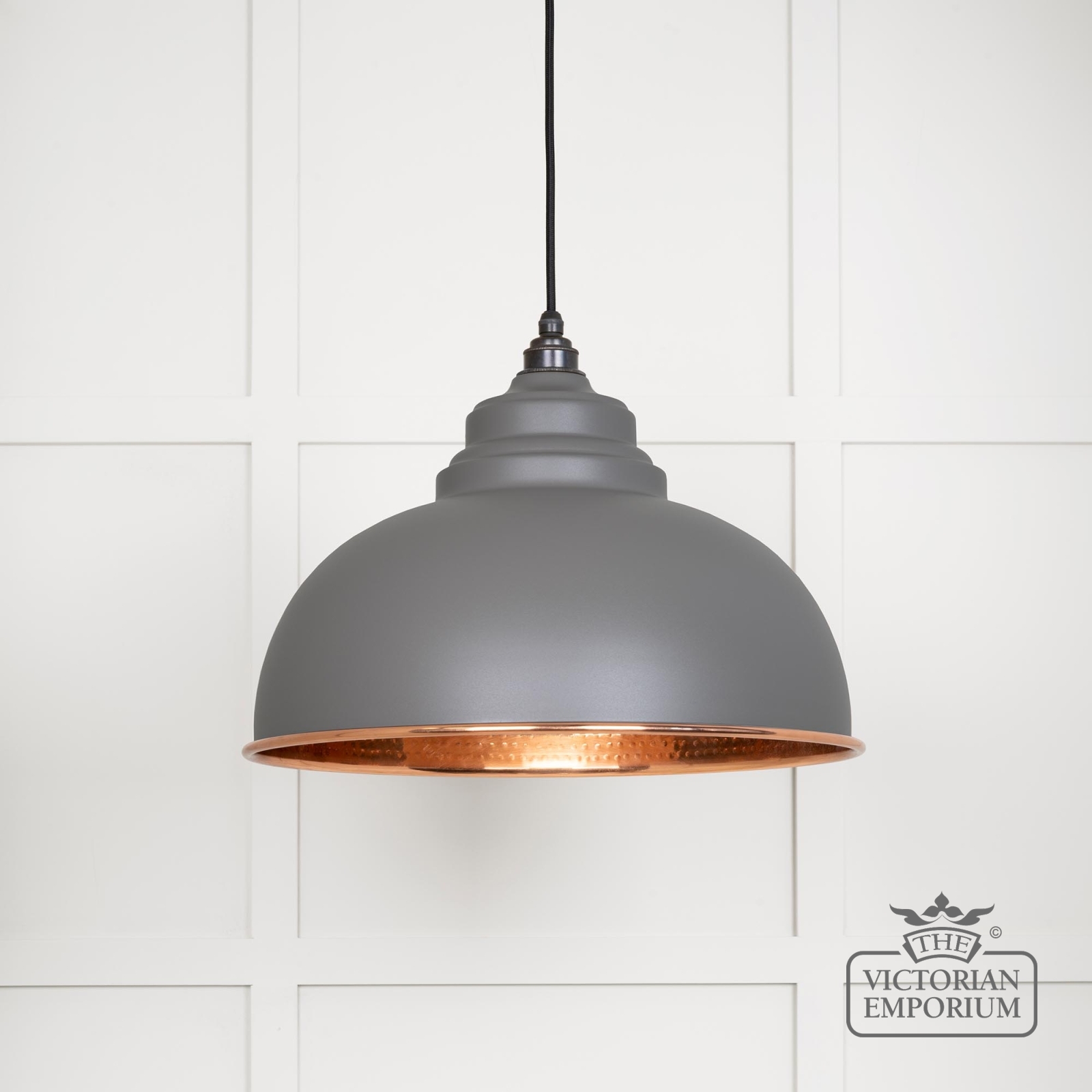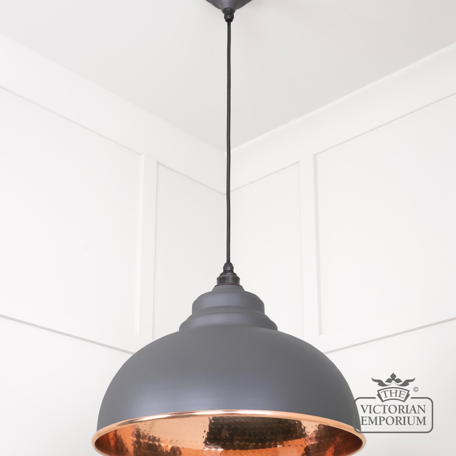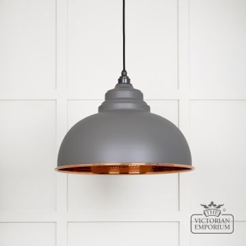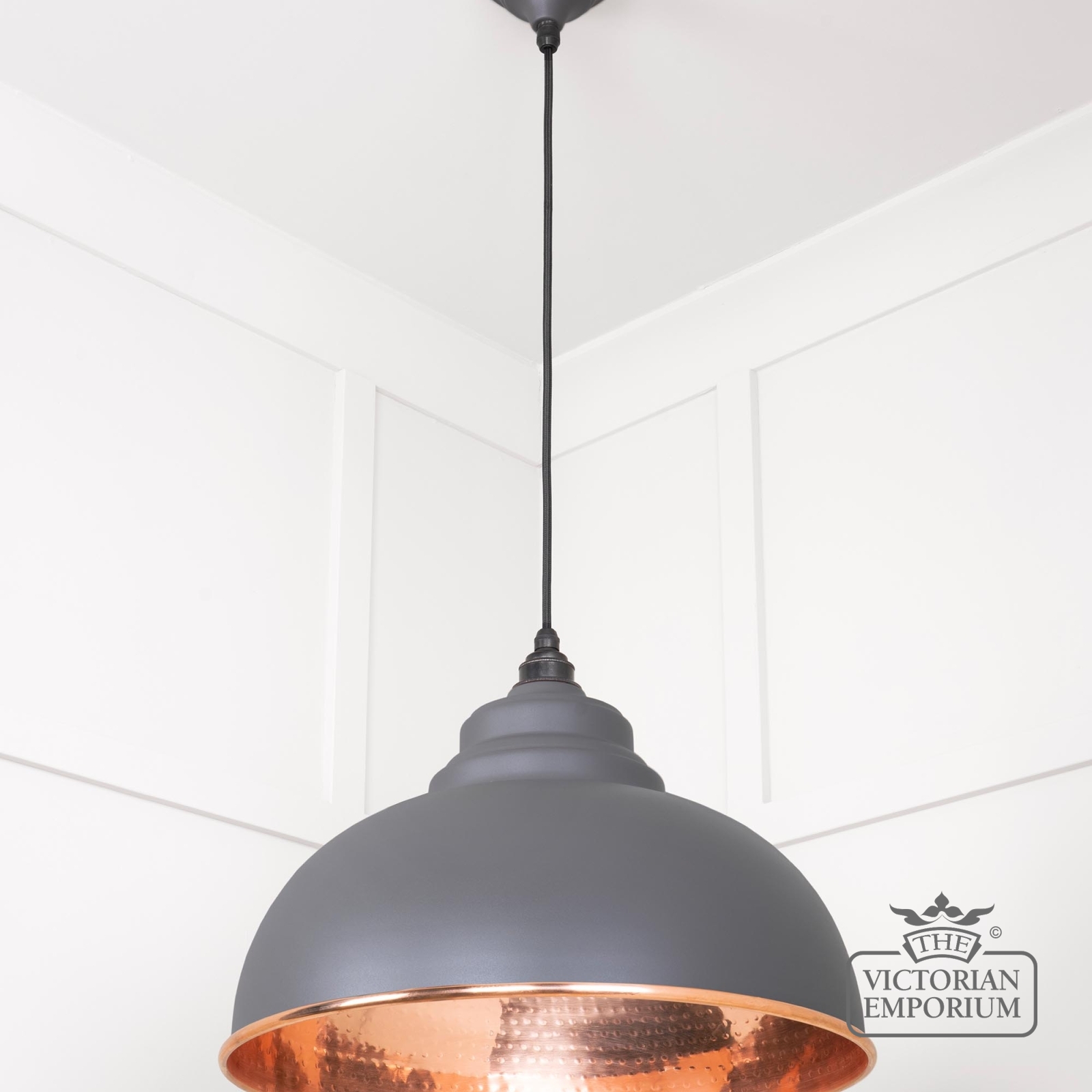Harlow Pendant Light in Bluff with Hammered Copper Interior