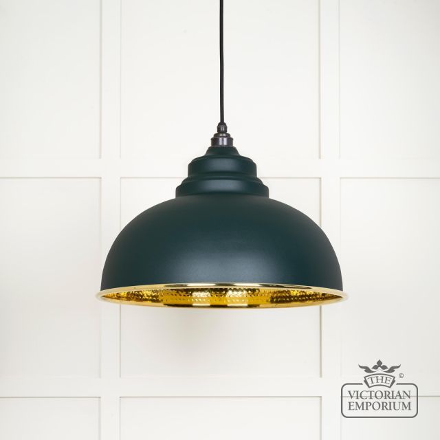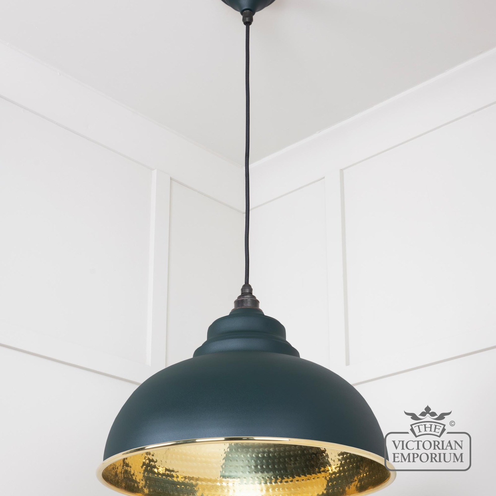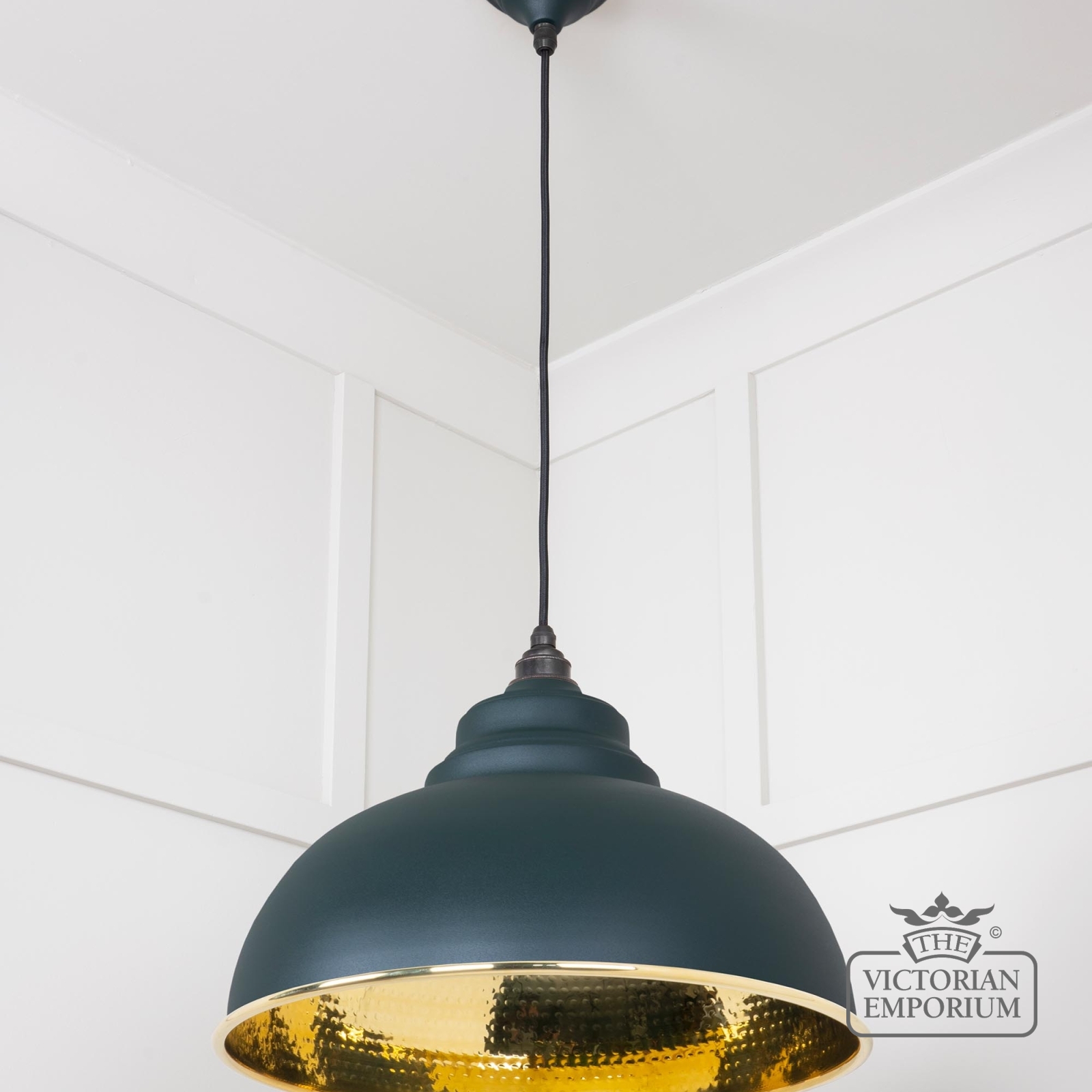 Harlow pendant light in hammered brass with painted Dingle exterior