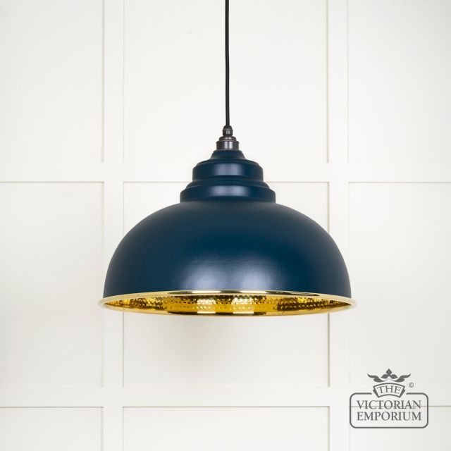 Harlow pendant light in hammered brass with painted Dusk exterior