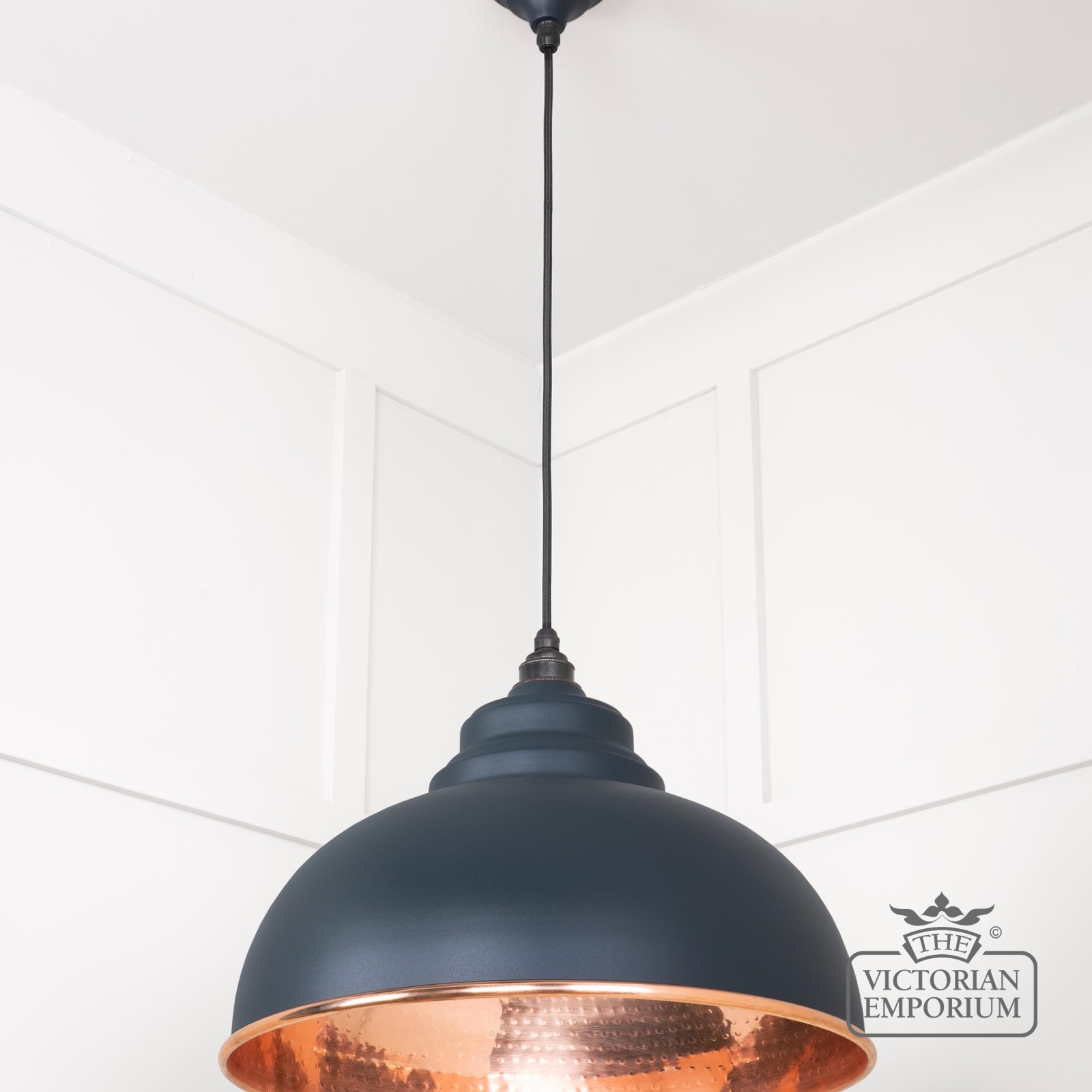 Harlow Pendant Light in Hammered Copper with Soot Exterior