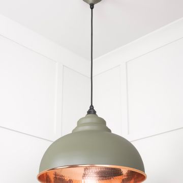 Harlow Pendant Light in Hammered Copper with Tump Exterior