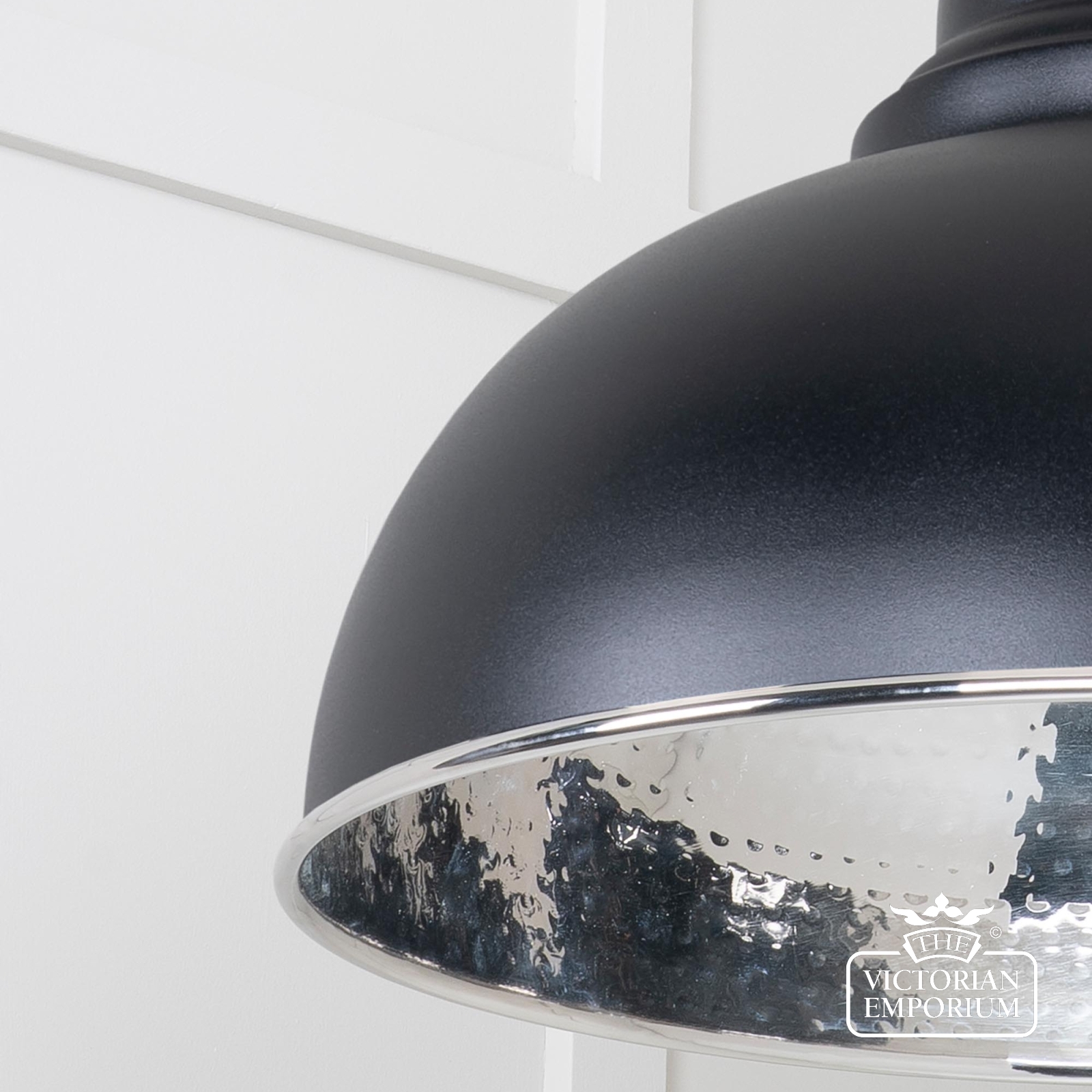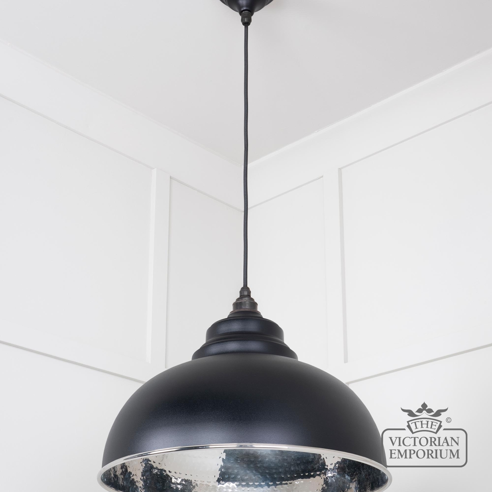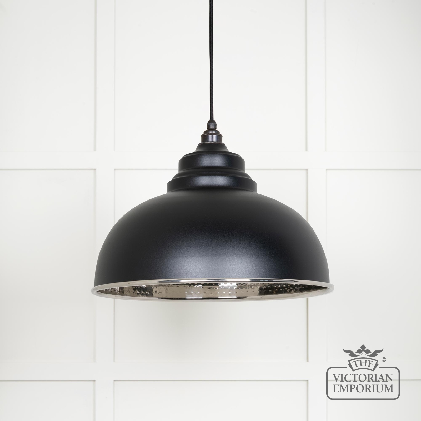 Harlow Pendant light in Hammered Nickel with Black Exterior