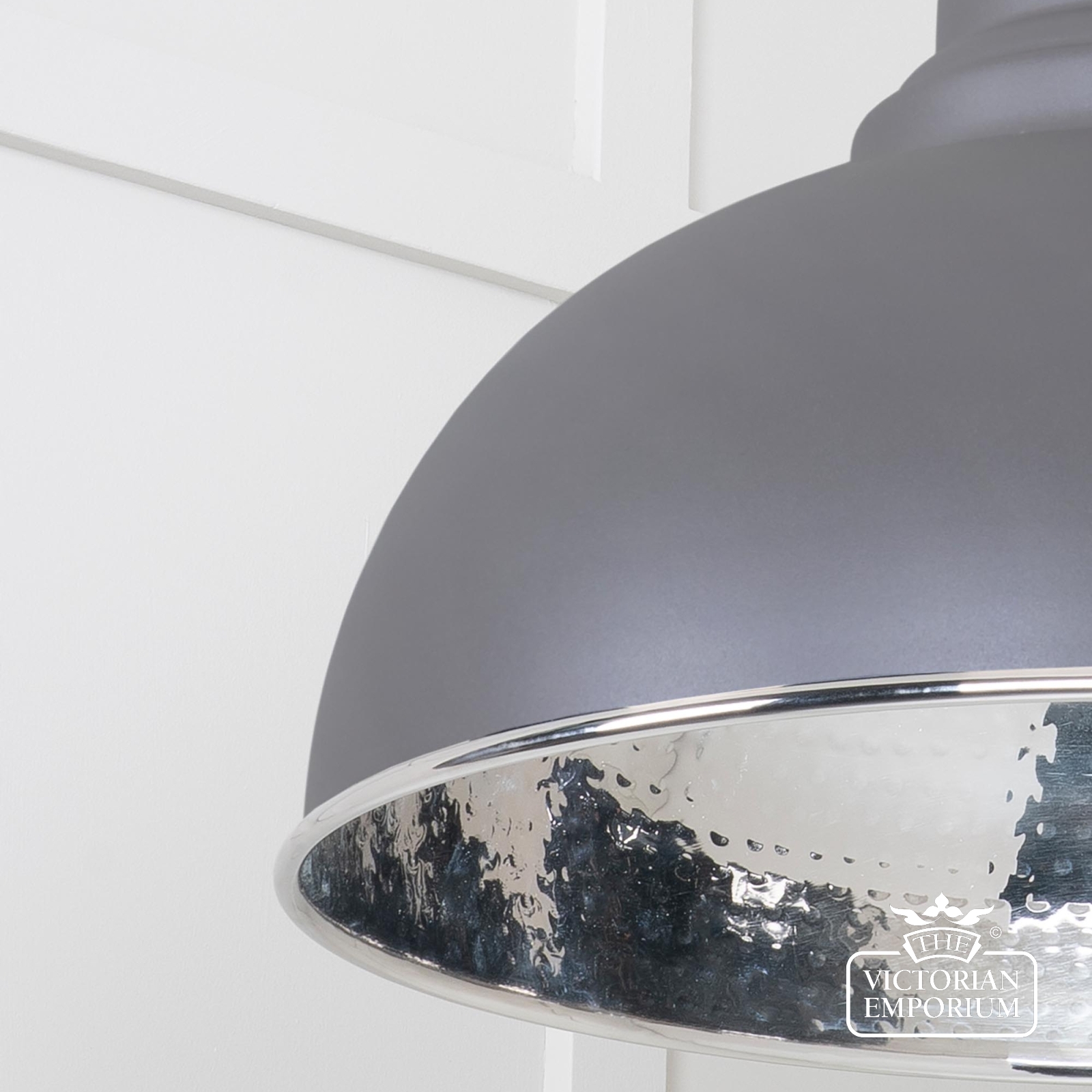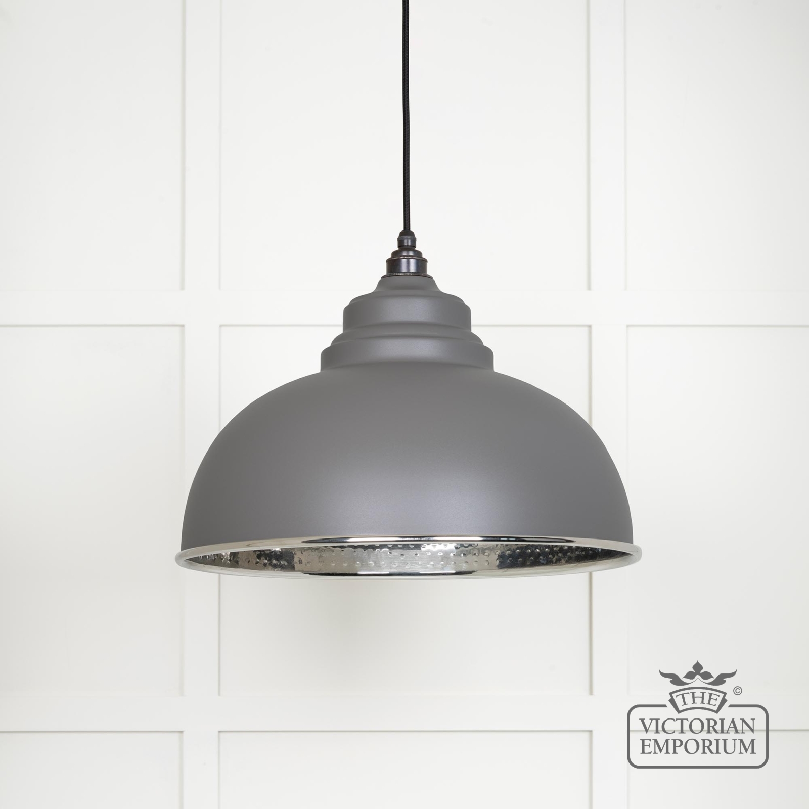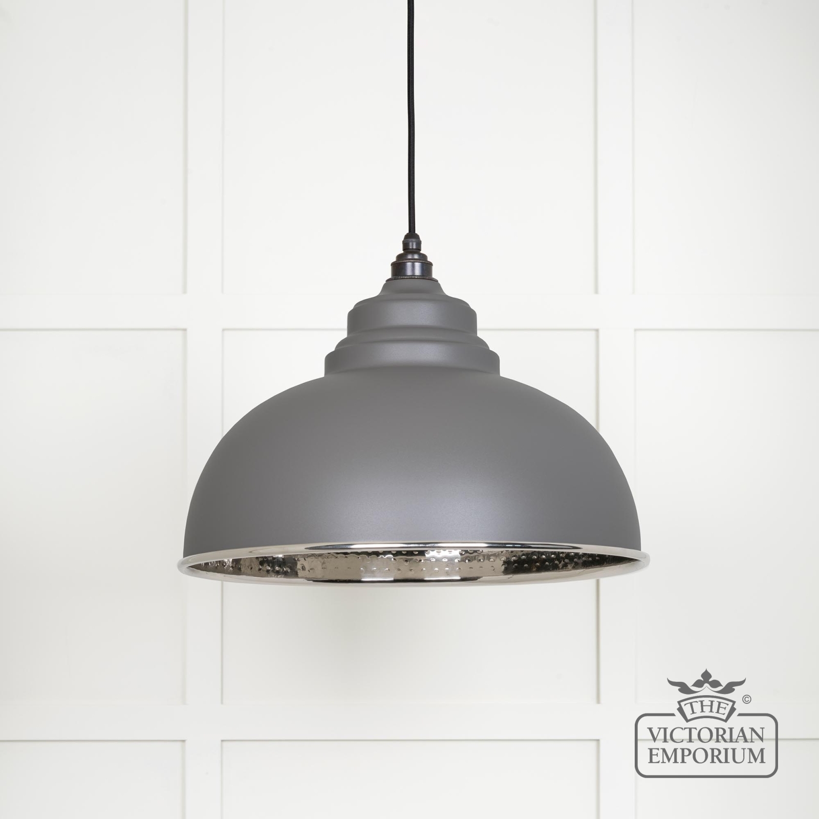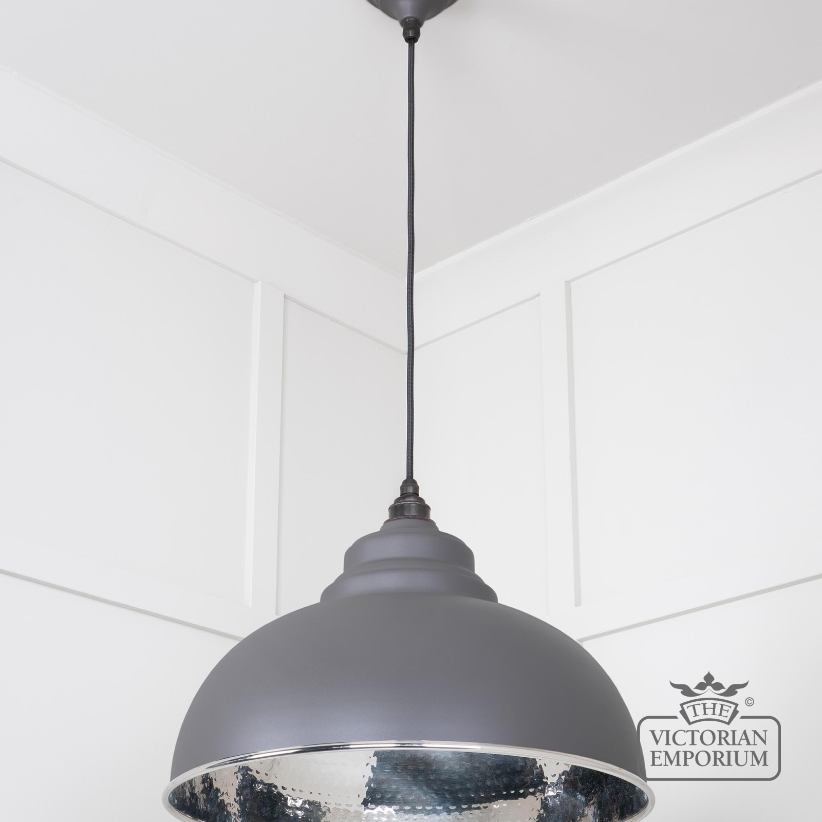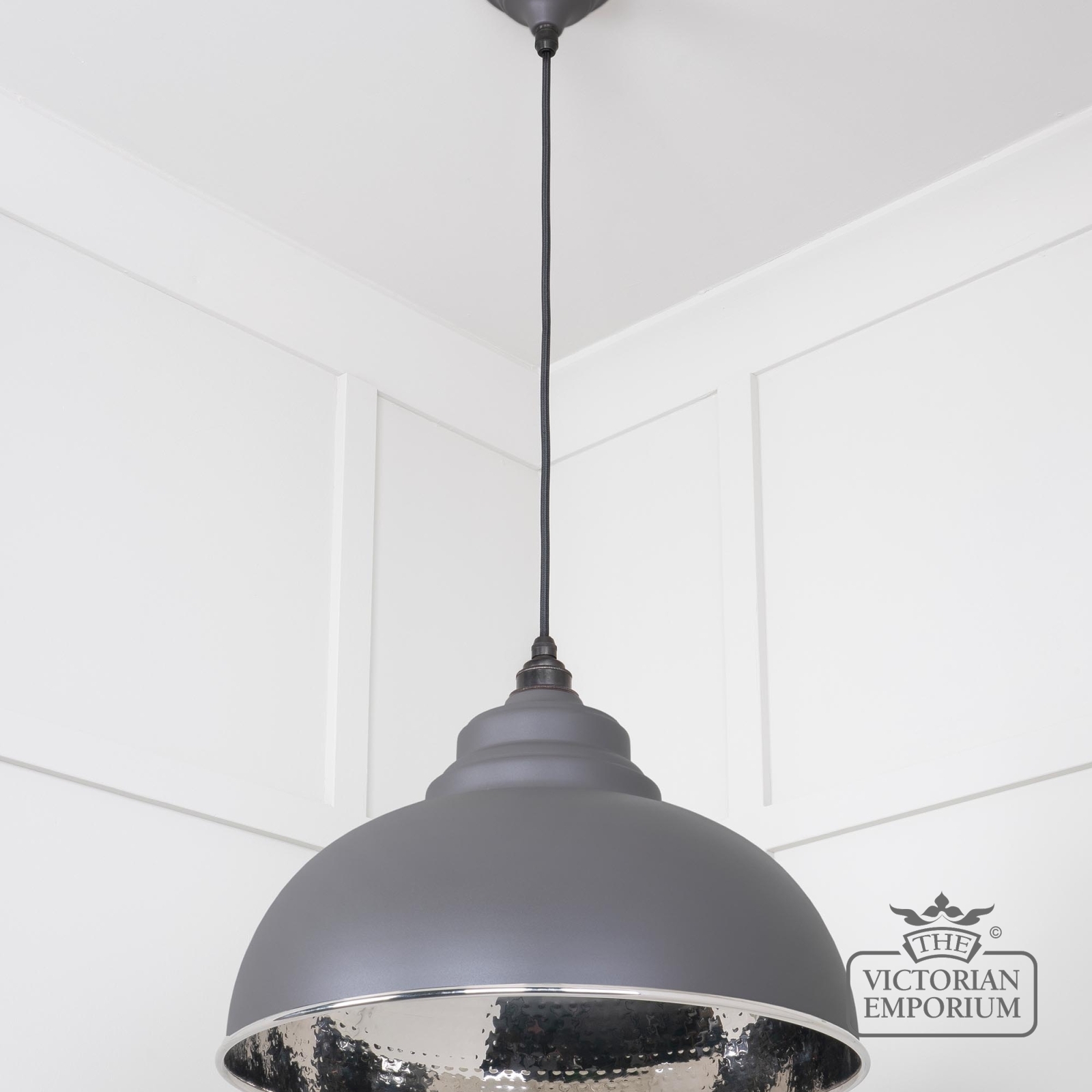 Harlow Pendant light in Hammered Nickel with Bluff Exterior