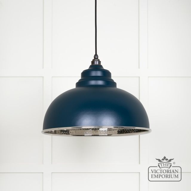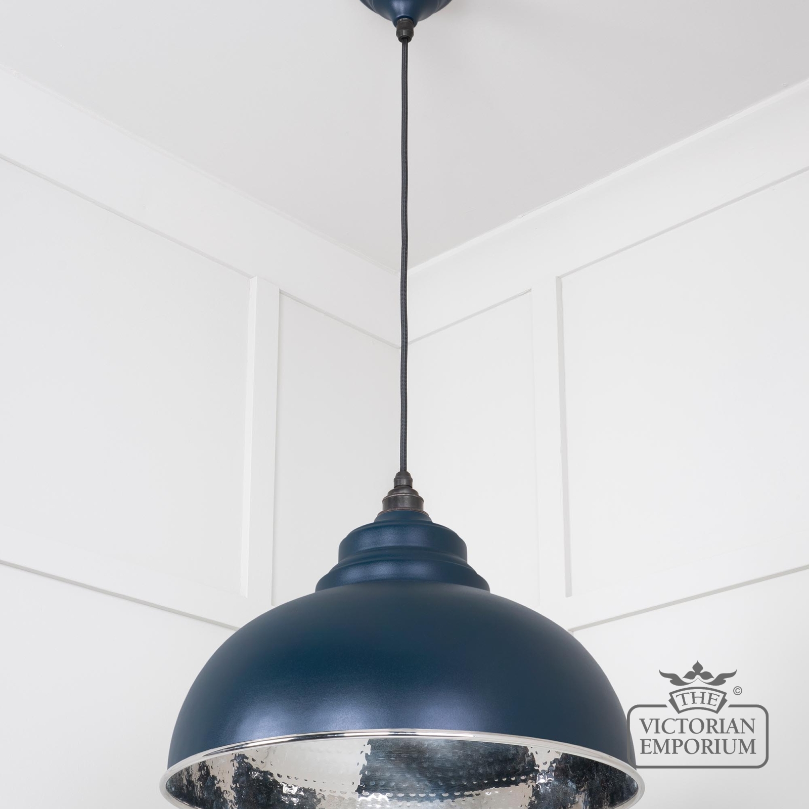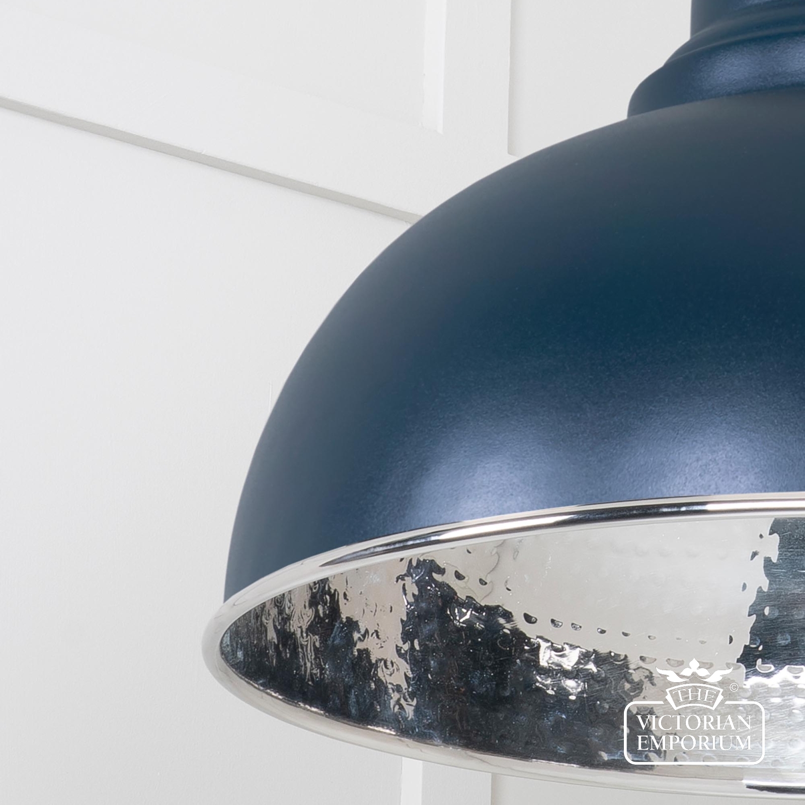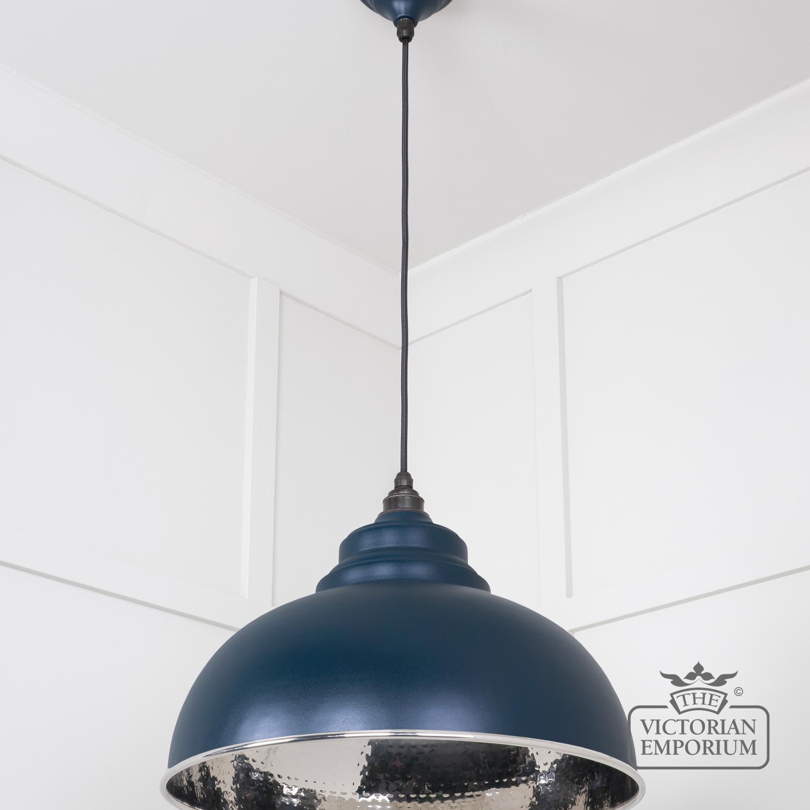 Harlow Pendant light in Hammered Nickel with Dusk Exterior