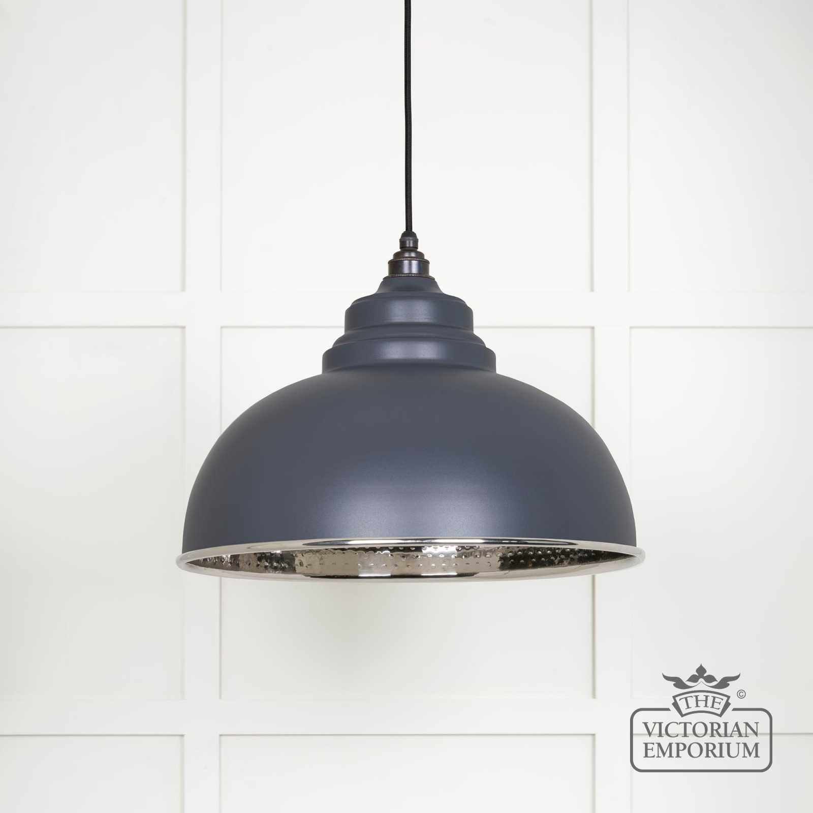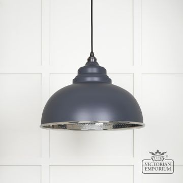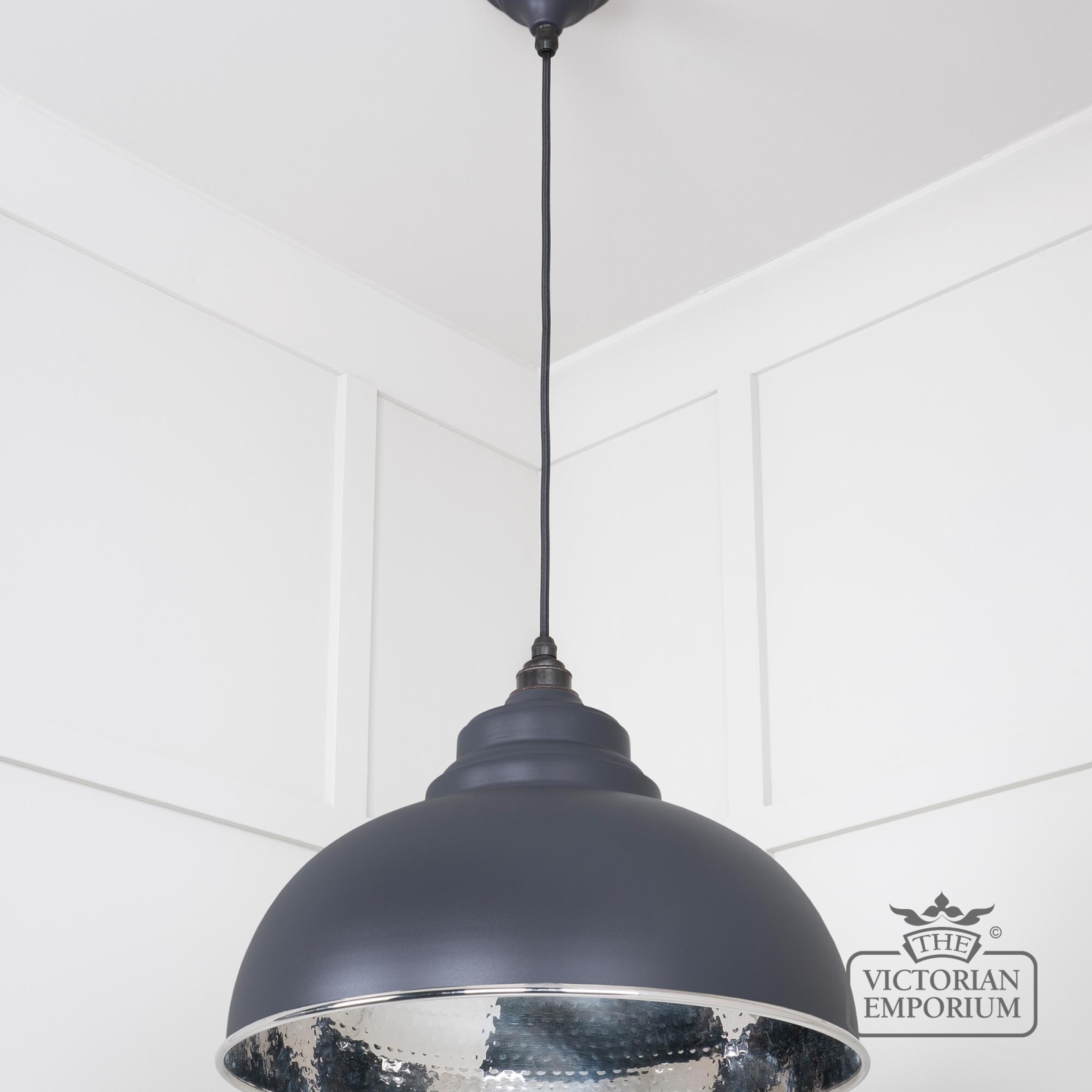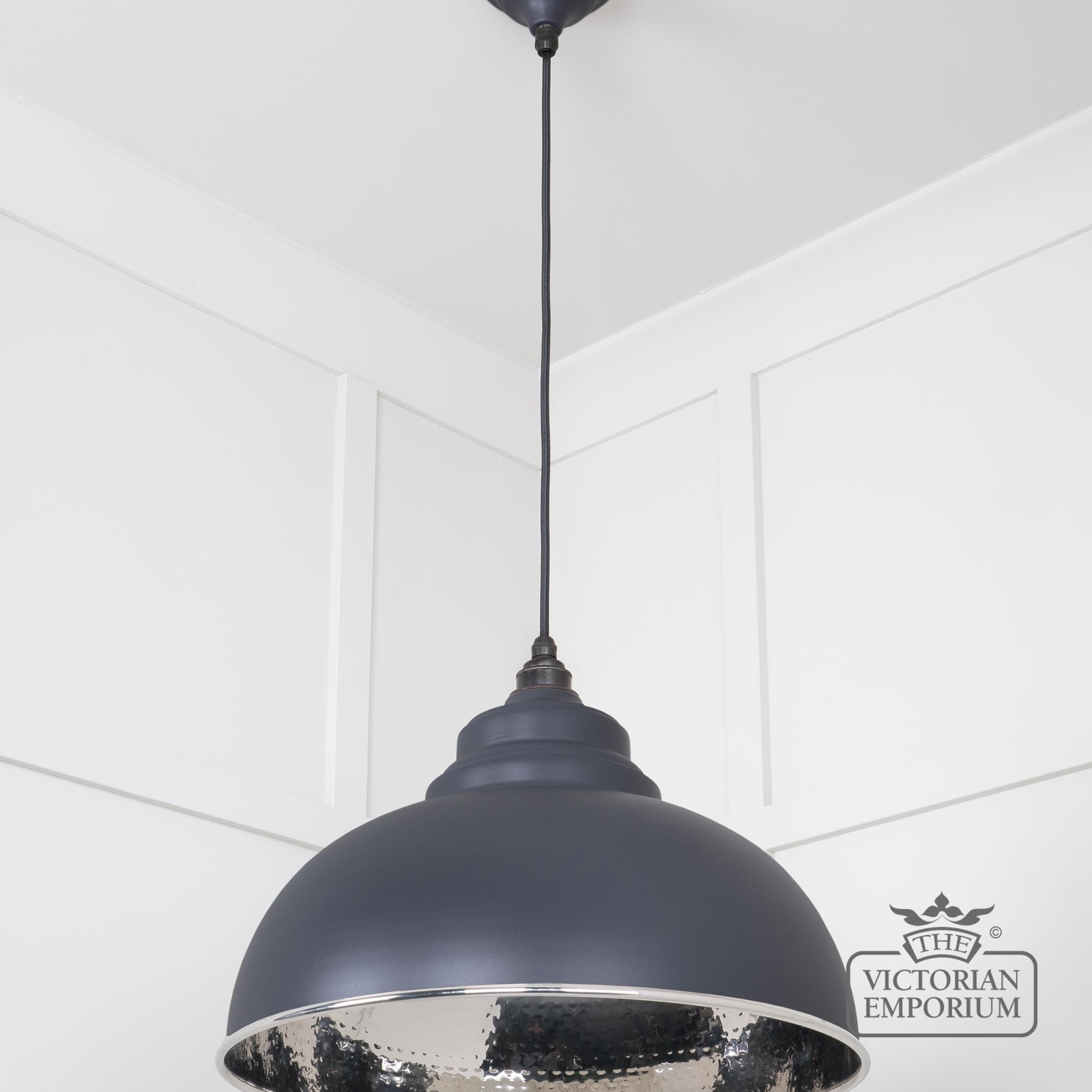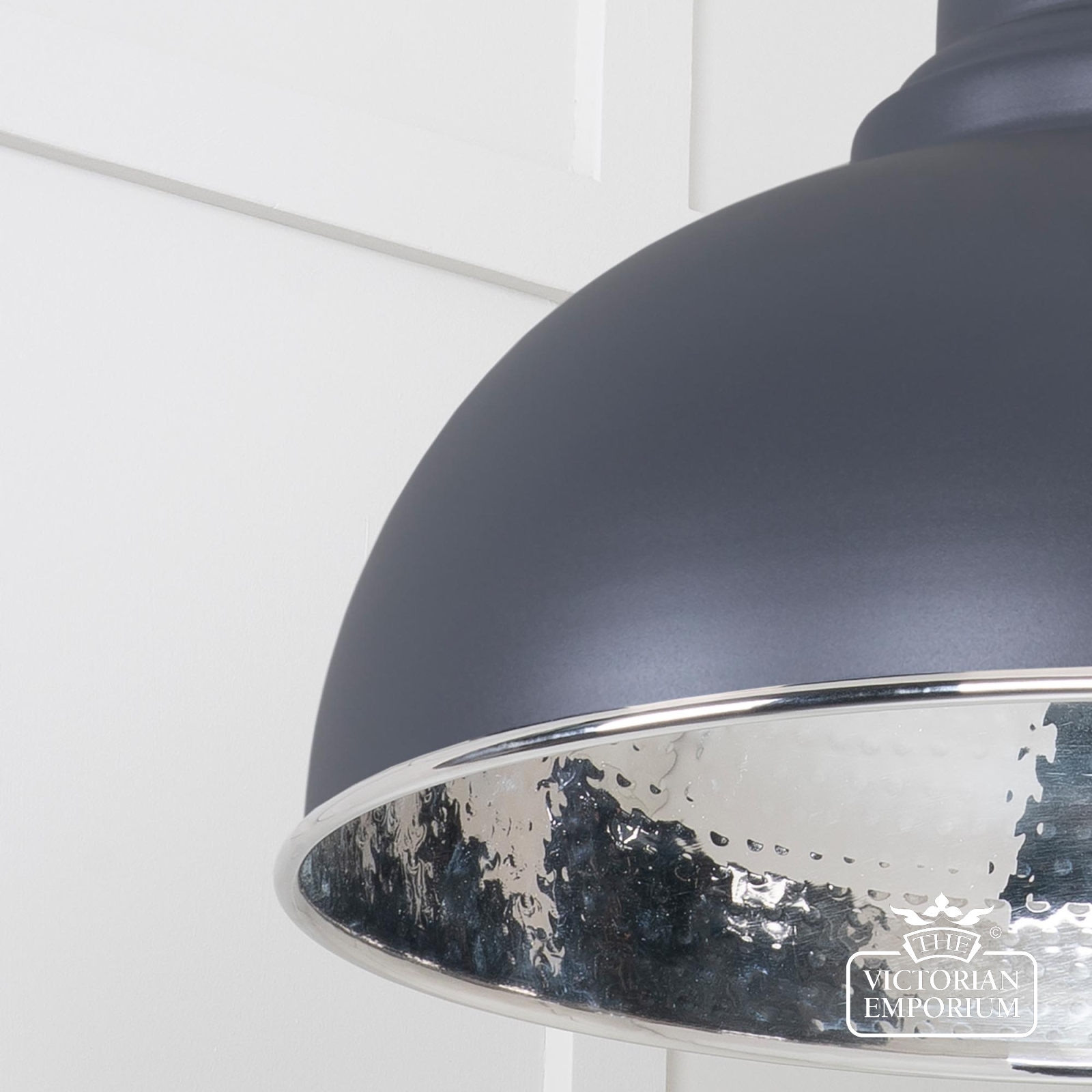 Harlow Pendant light in Hammered Nickel with Slate Exterior