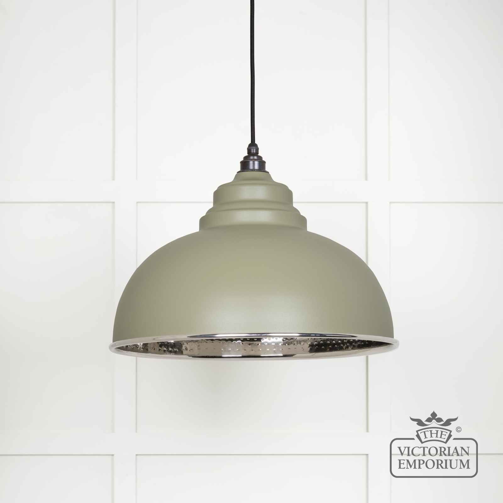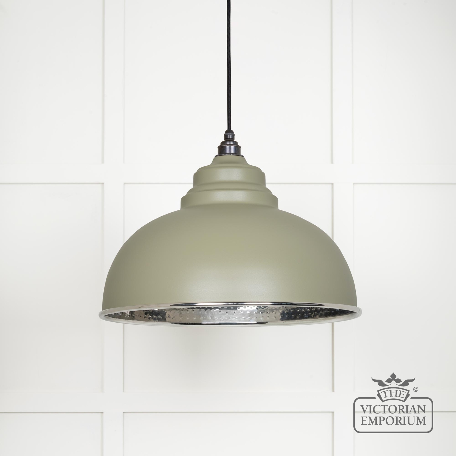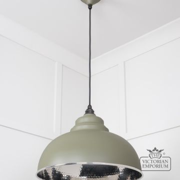Harlow Pendant light in Hammered Nickel with Tump Exterior