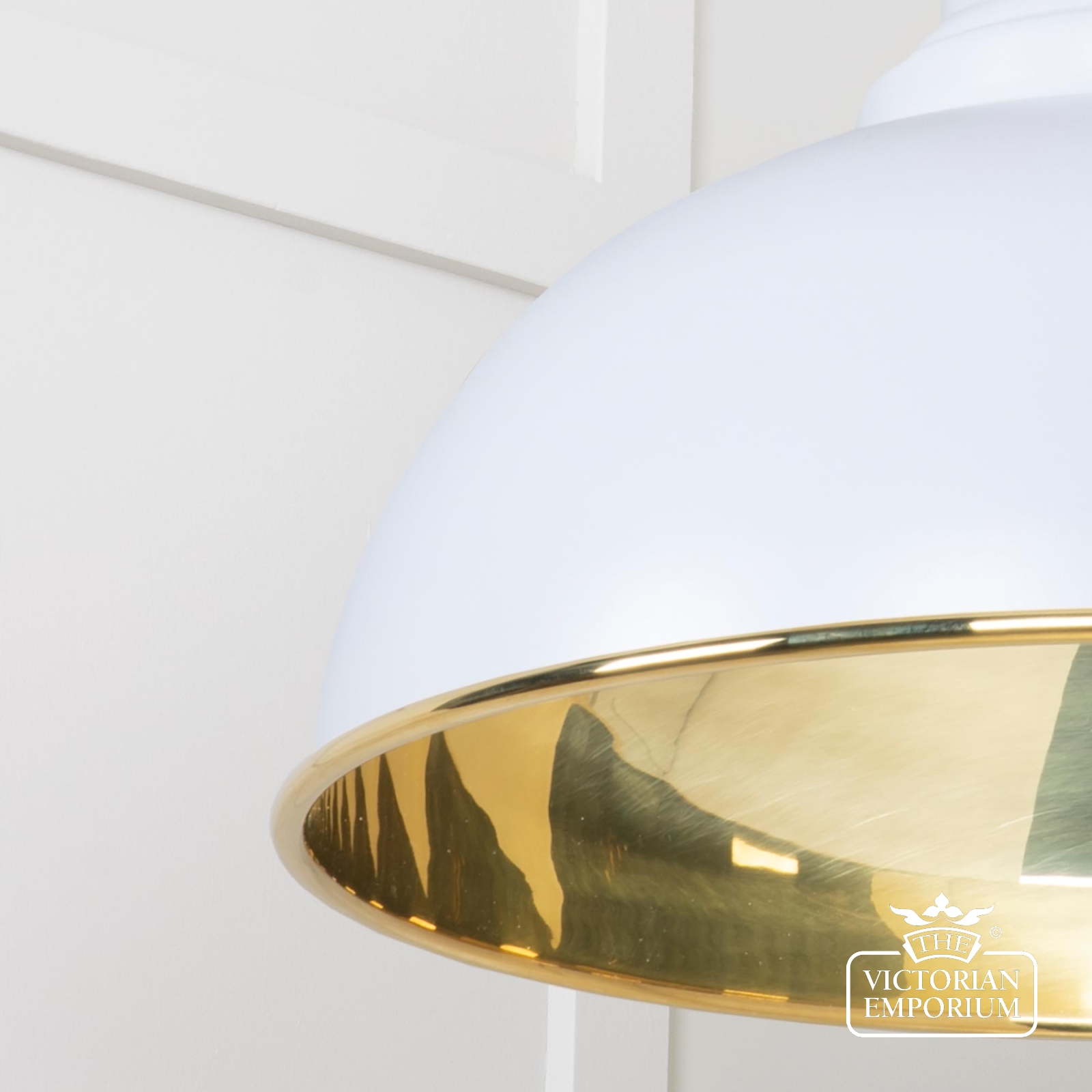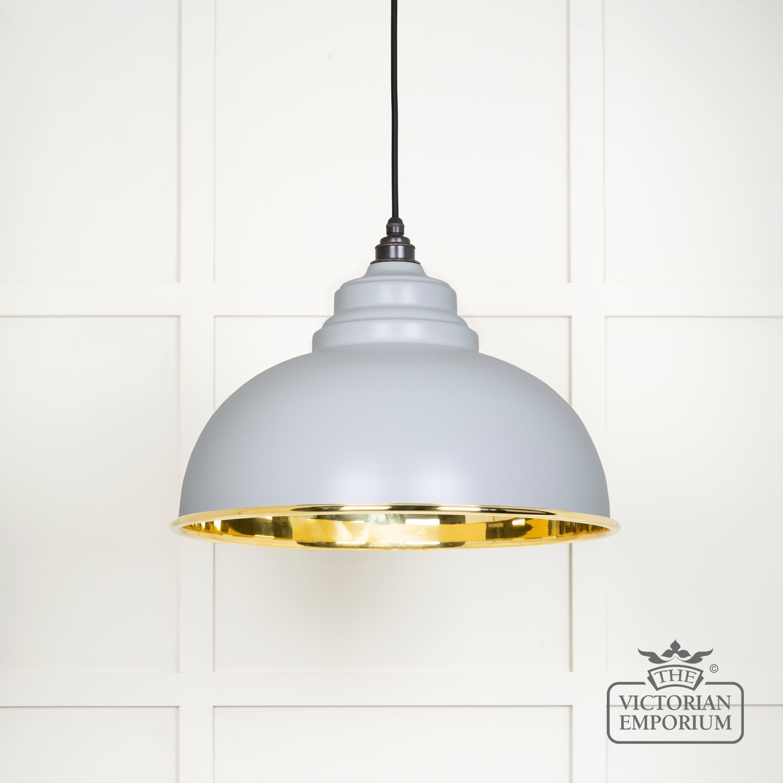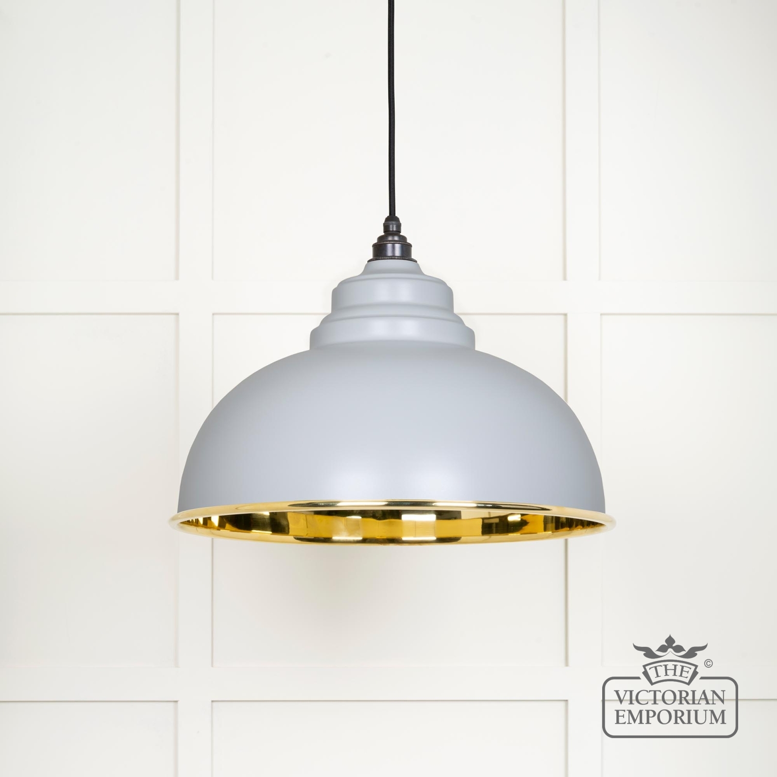 The Harlow pendant is a classic design with rounded edges and perfect proportions to make it the perfect focal point with a smooth brass interior and with painted Birch exterior