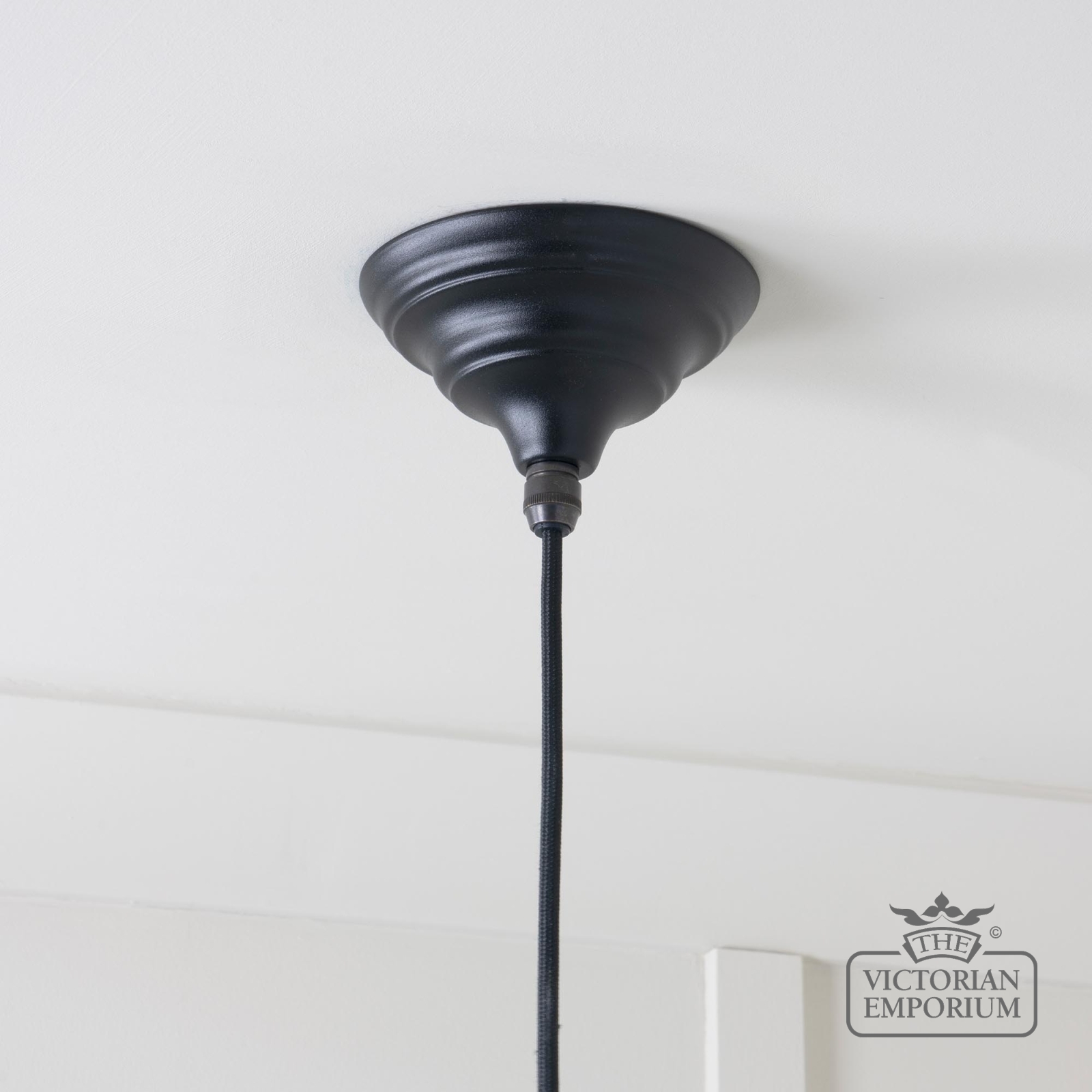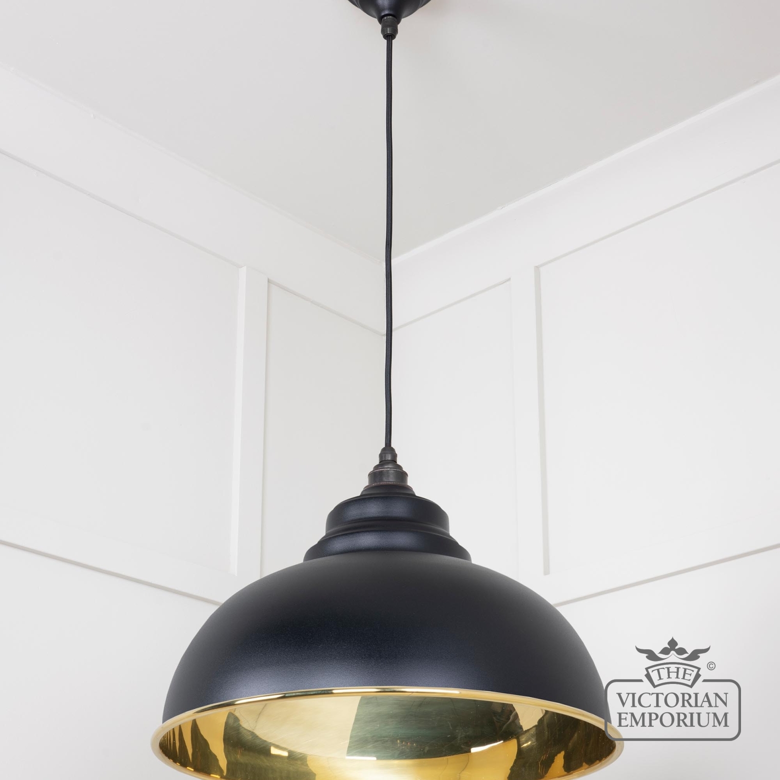 The Harlow pendant is a classic design with rounded edges and perfect proportions to make it the perfect focal point with a smooth brass interior and with painted Black exterior