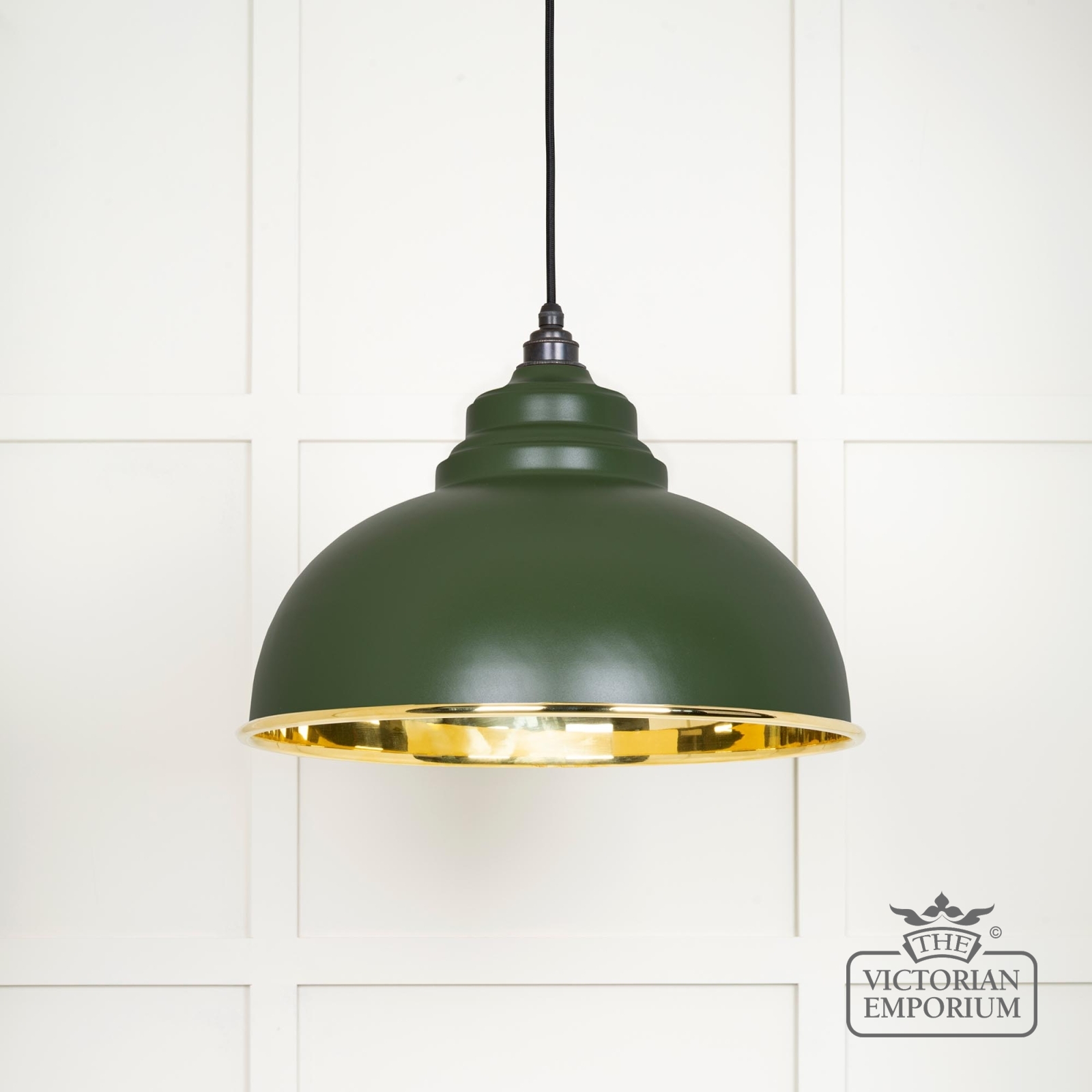 The Harlow pendant is a classic design with rounded edges and perfect proportions to make it the perfect focal point with a smooth brass interior and with painted Heath exterior