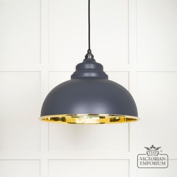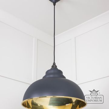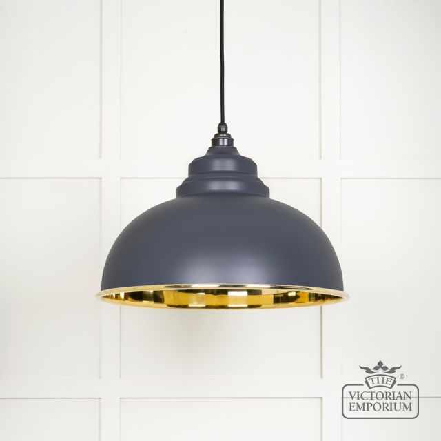 Harlow pendant light in smooth brass with painted Slate exterior