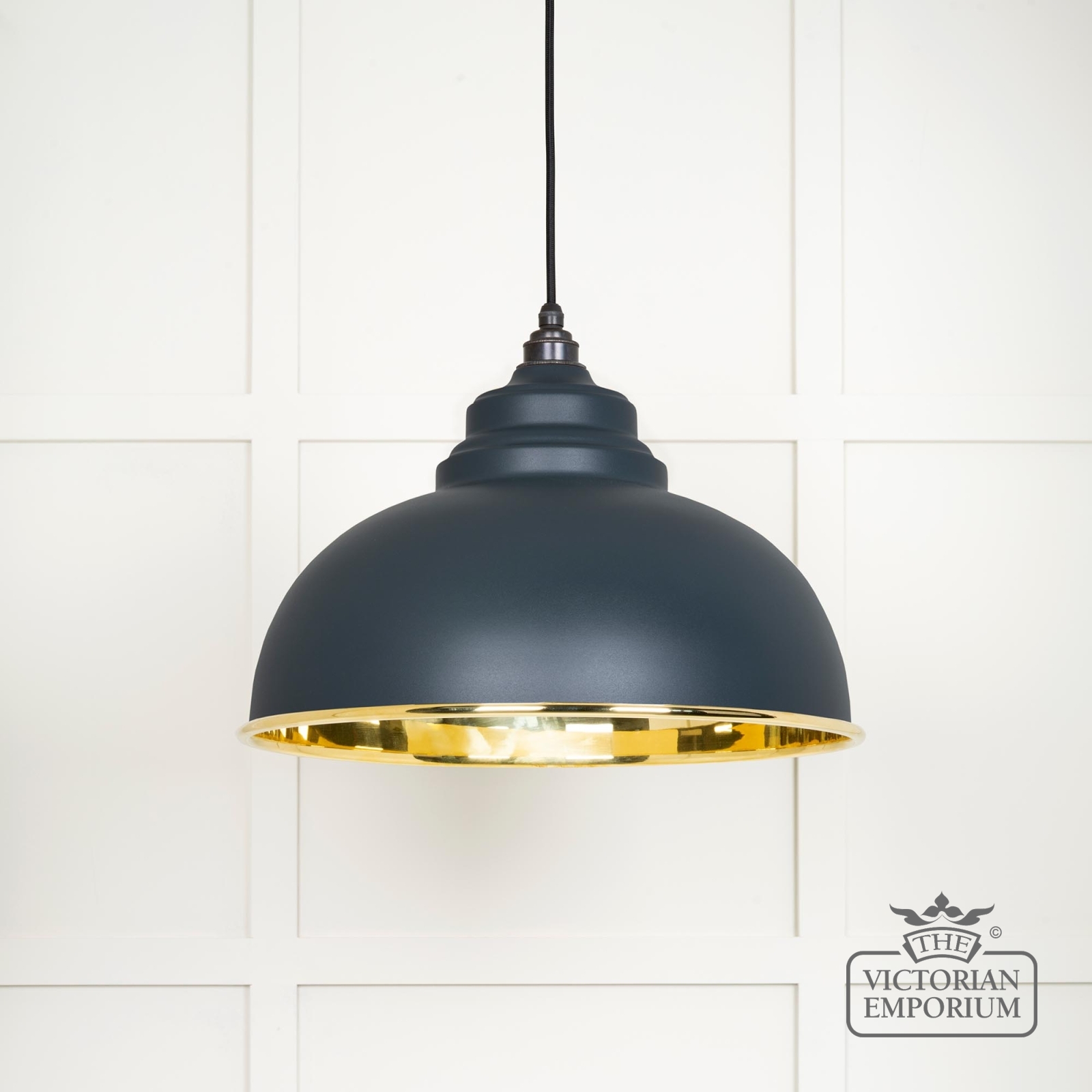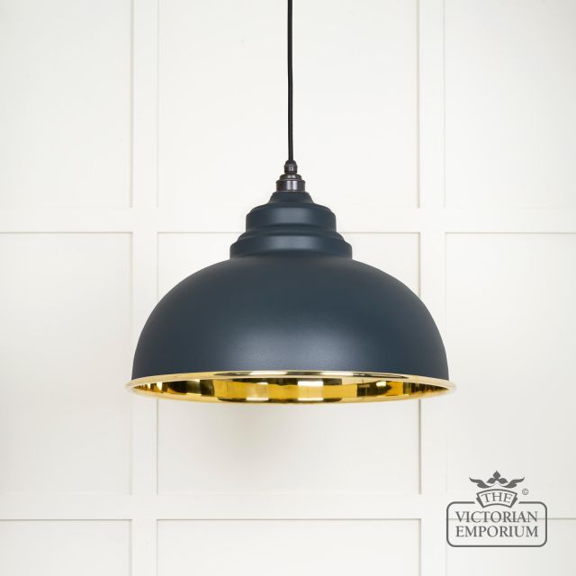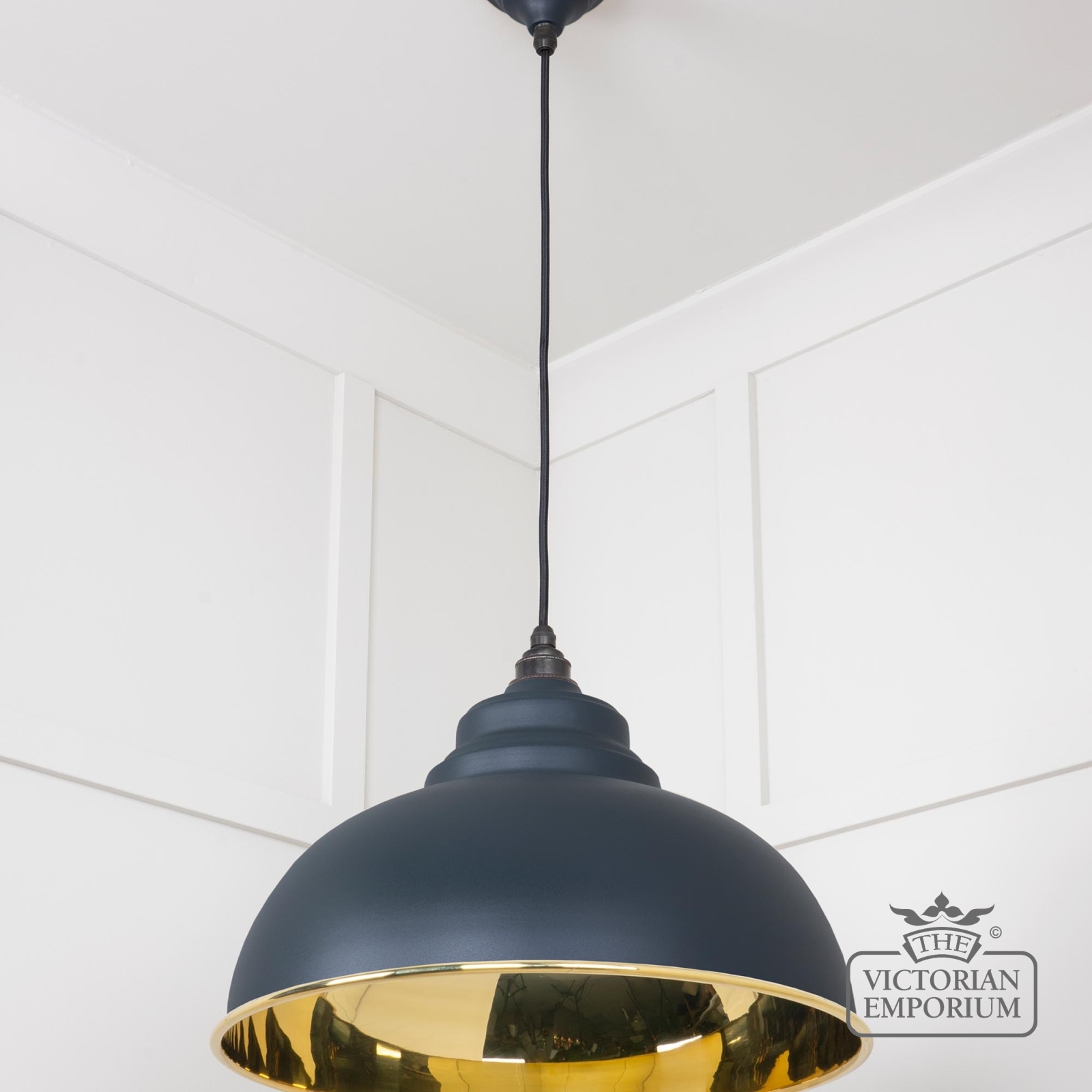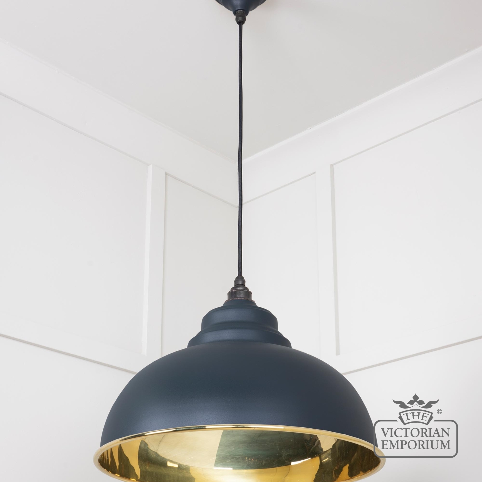 The Harlow pendant is a classic design with rounded edges and perfect proportions to make it the perfect focal point with a smooth brass interior and with painted Soot exterior