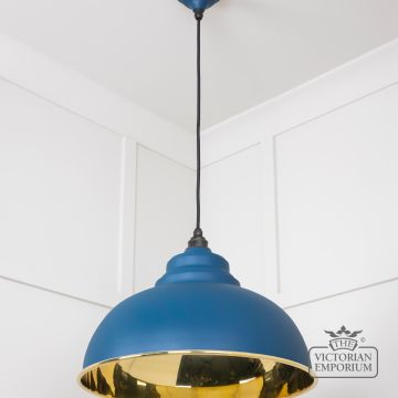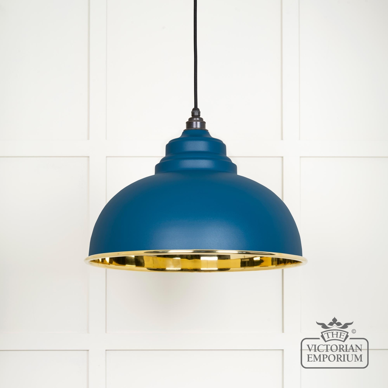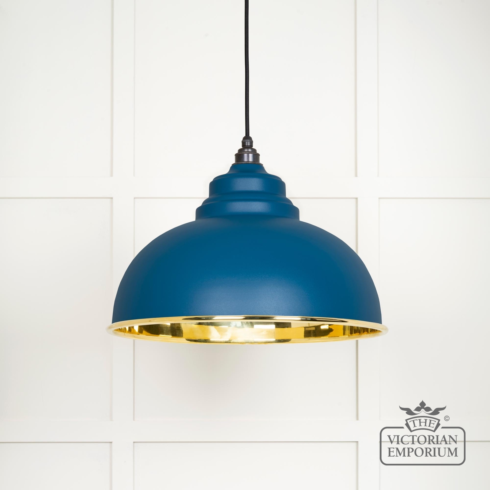Harlow pendant light in smooth brass with painted Upstream exterior
