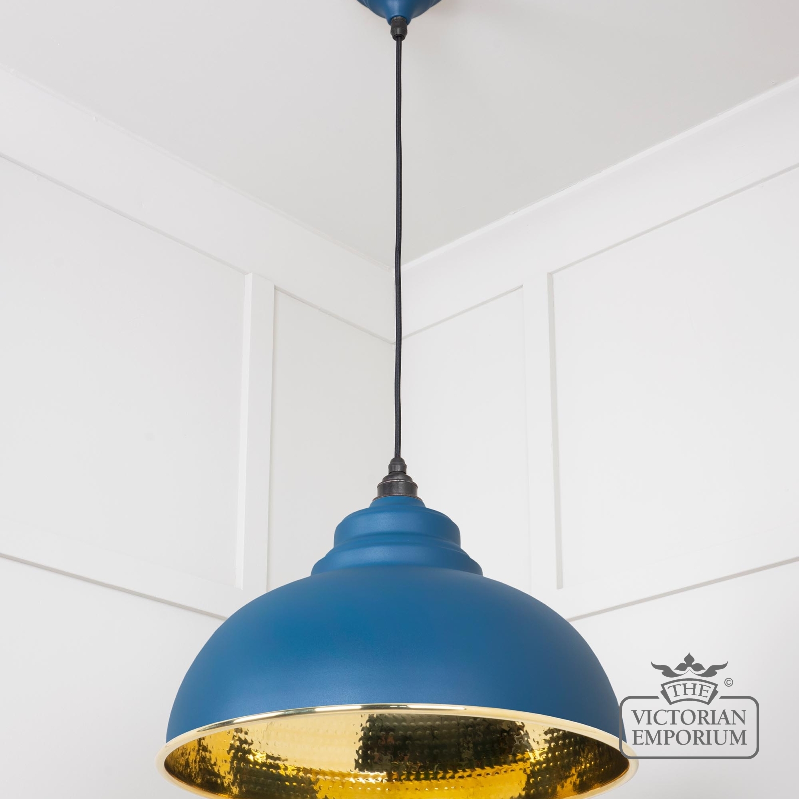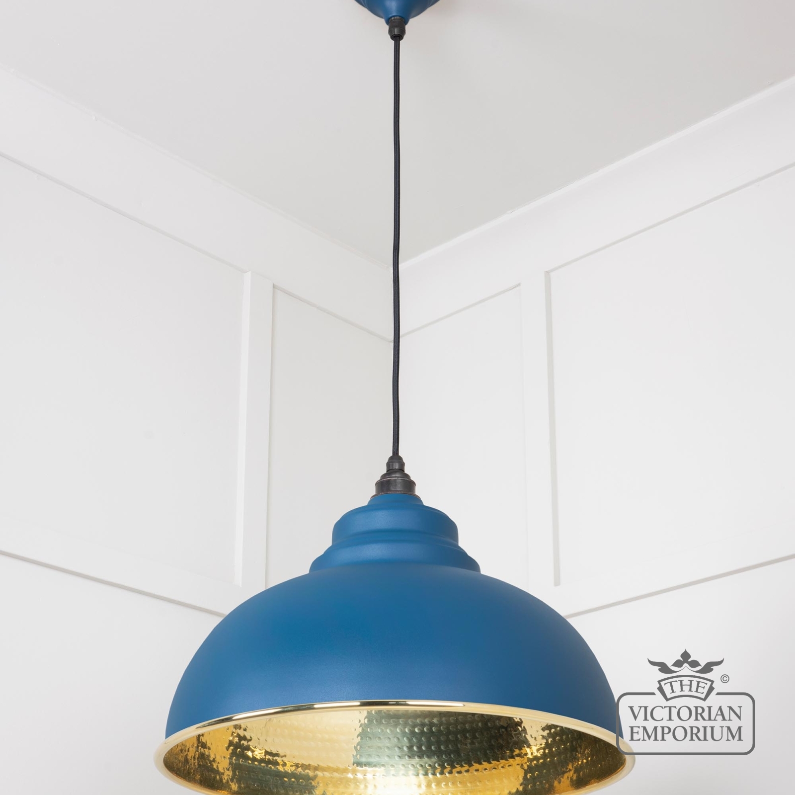 Harlow pendant pendant in hammered brass with painted Upstream exterior