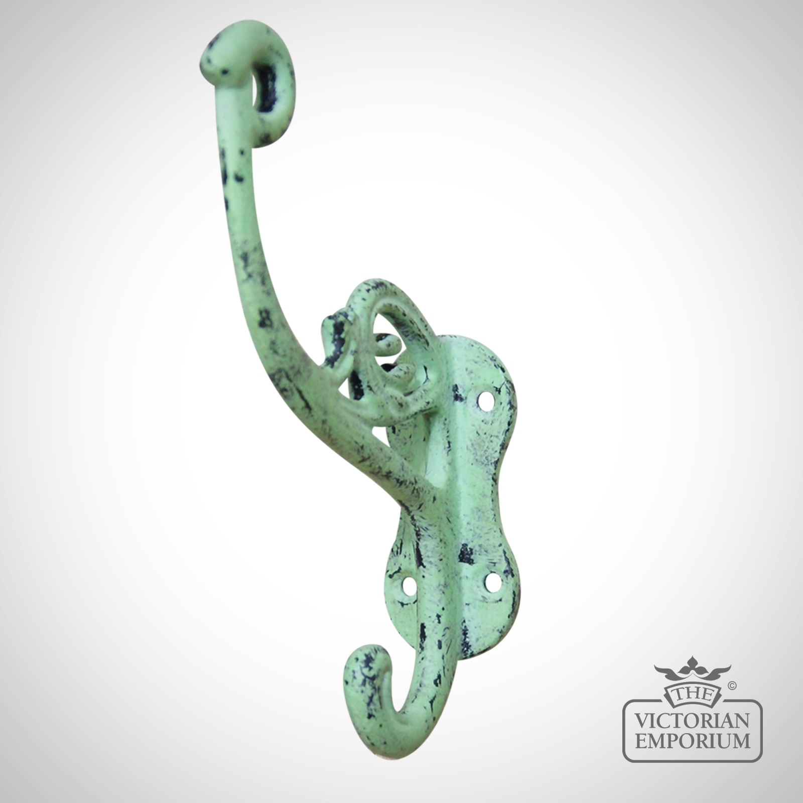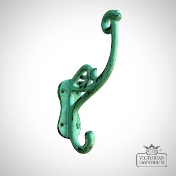 Hat & Coat Hook Swan Neck ‘P’ in Antique Green 4 Hole